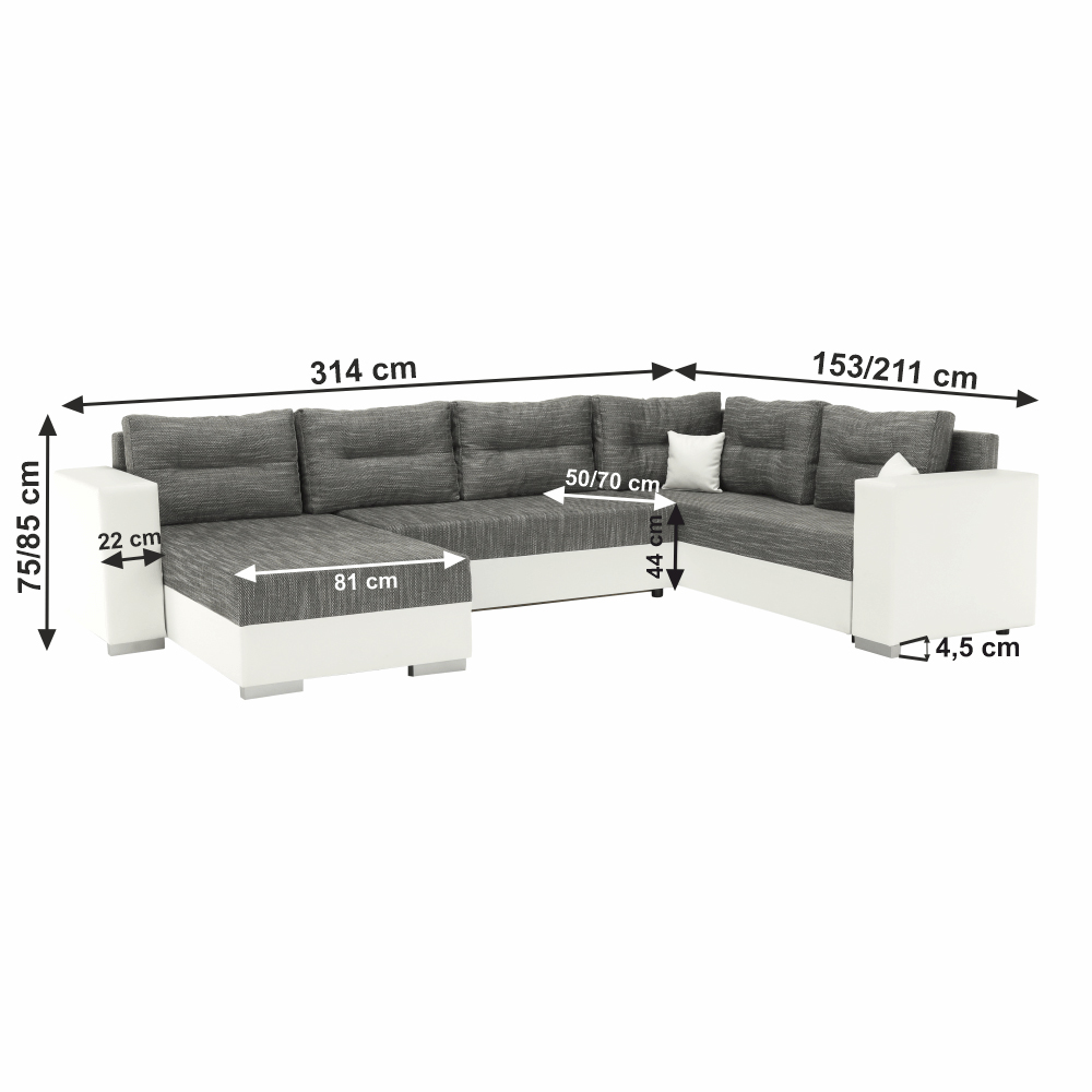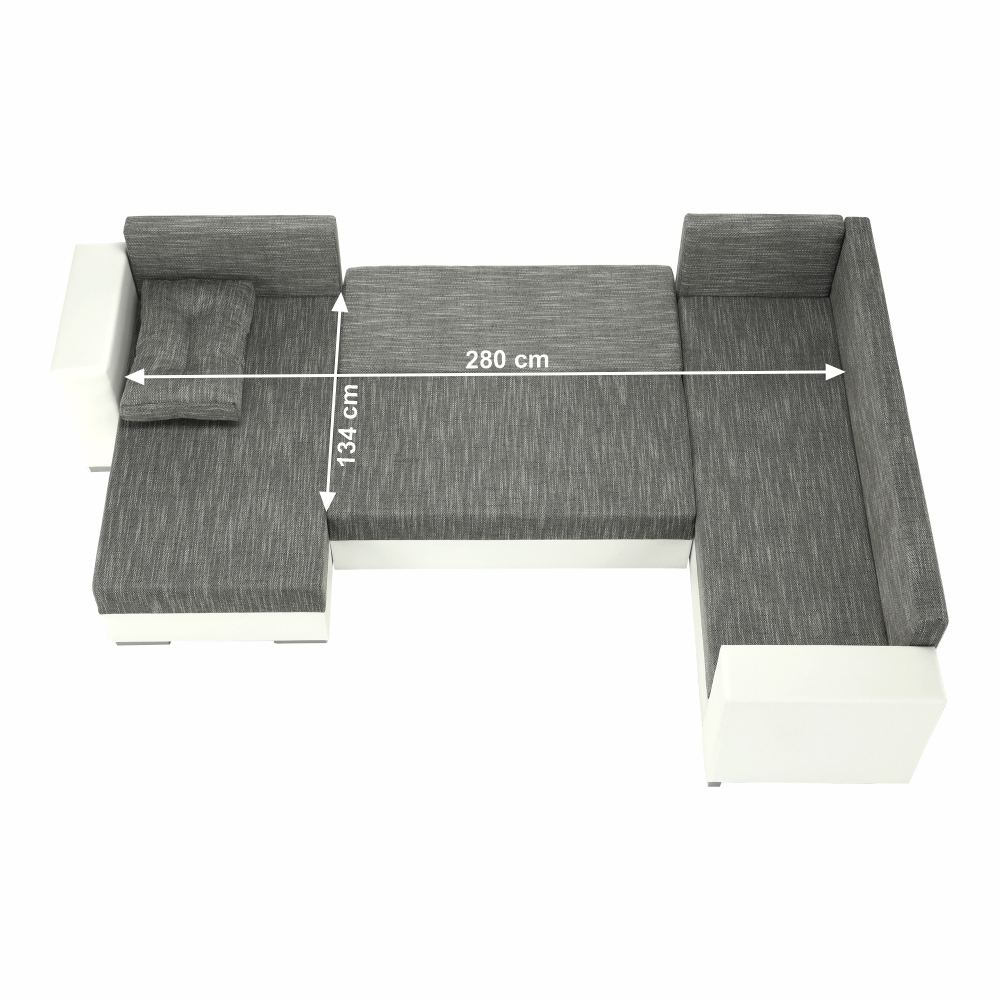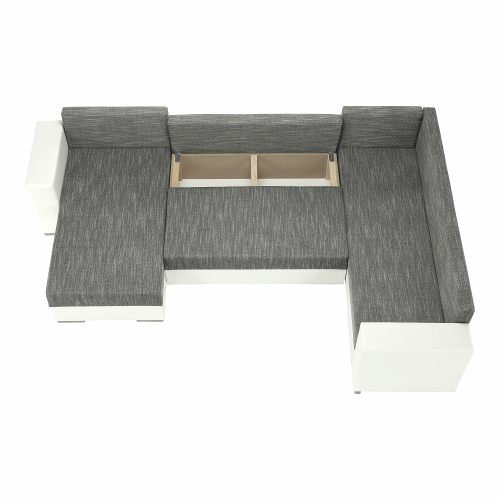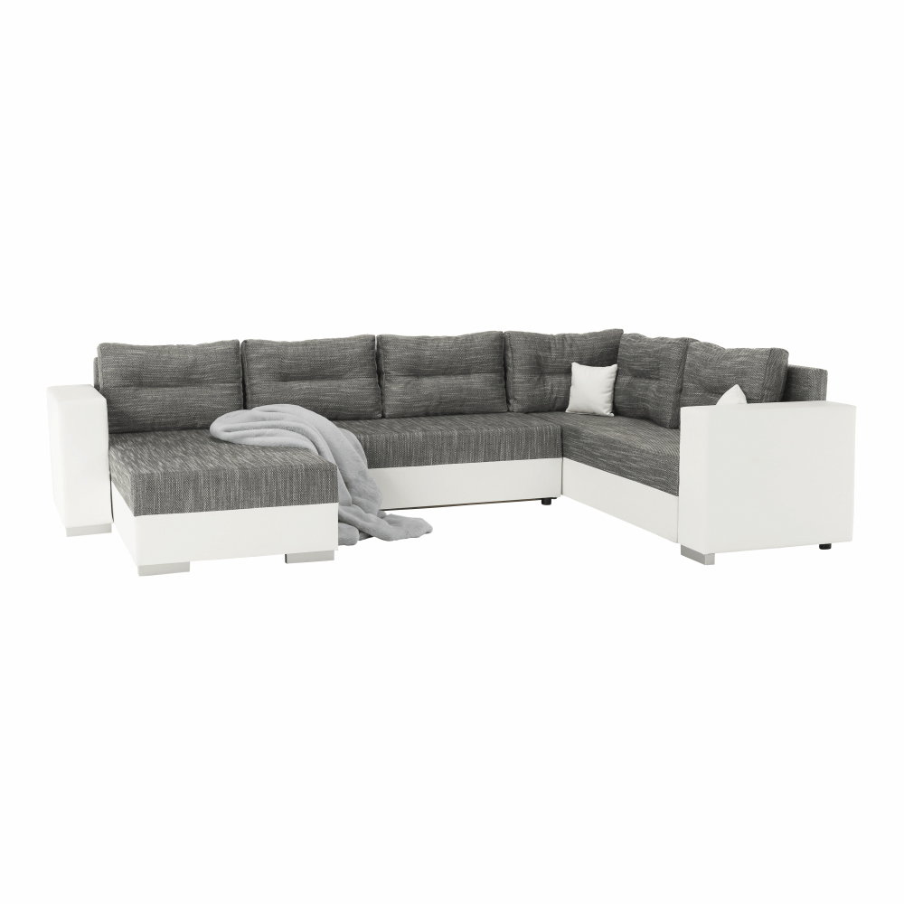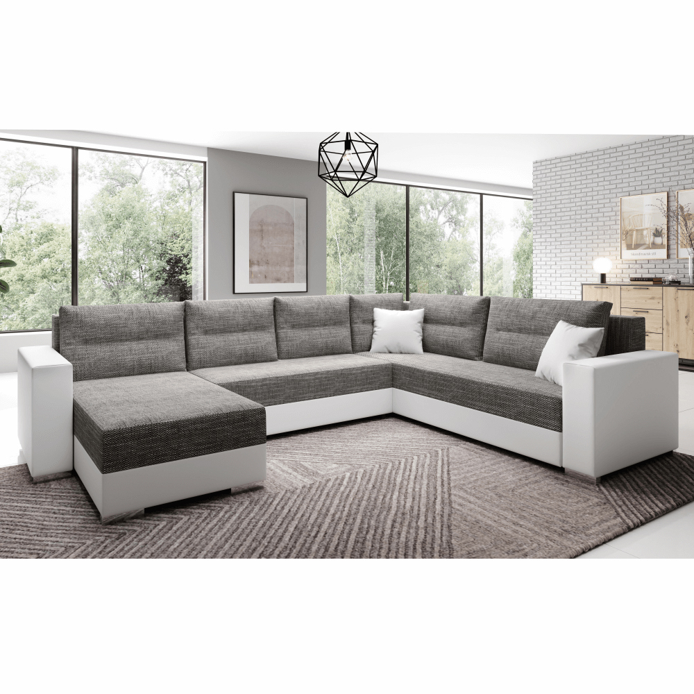 Rohová sedací souprava ve tvaru U Stalira (bílá + šedohnědá)