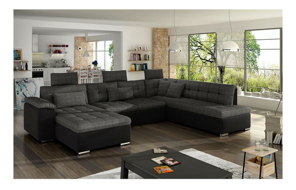 Rozkládací sedací souprava Verity s úložným prostorem je praktický a funkční model, který se bude perfektně hodit do velké a prostorné místnosti. Rohová sedačka do obývacího pokoje má módní podobu, podobnou písmenu U. Poskytuje spoustu prostoru pro vaši rodinu nebo hosty. Velikost je jen jednou z mnoha výhod tohoto modelu. Dalším je široký gauč, který vám poskytne večerní relaxaci vleže nebo vleže. Vynechat nelze ani pohodlné opěrky hlavy a funkci spánku. V rozloženém stavu nabízí rohová sedačka pohodlné místo ke spaní pro dvě osoby. A v boxu s nábytkem budete mít náhradní sadu ložního prádla.