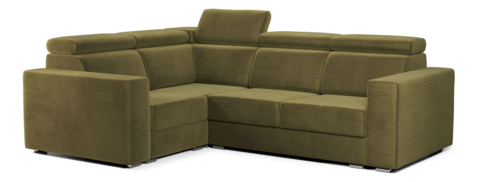 Naše rohová sedačka Viktoria navržená s levou orientací se pyšní nadčasovým a elegantním designem. S robustní konstrukcí ze dřeva a 18 mm nábytkové desky nabízí sedačka maximální komfort díky výplni sedáku a opěradla z horizontálních pružin a pěny T 30. Součástí jsou výškově regulovatelné záhlavníky pro dodatečnou oporu a komfort. Kovové nožičky ve stříbrné barvě a výšce 5 cm dodávají sedačce moderní vzhled. Přestože sedačka nenabízí úložný prostor její luxusní vzhled a čalouněná zadní strana ji předurčují stát se centrálním kouskem v jakémkoli prostoru.