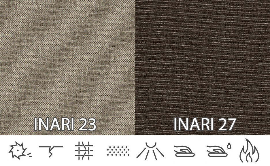 Inari je vysoce kvalitní látka patřící do skupiny tkaných látek. Je to plochá tkaná látka ze dvou barevných nití, odolná vůči oděru a roztržení. Může se žehlit při nízkých teplotách. Látka se nemůže prát, ždímat ani čistit chemicky, jen ručně houbou namočenou v saponátu nebo tepovat.