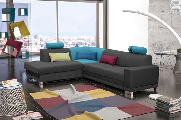 - Rohová sedací souprava Virgo (modrá + šedá) (L)