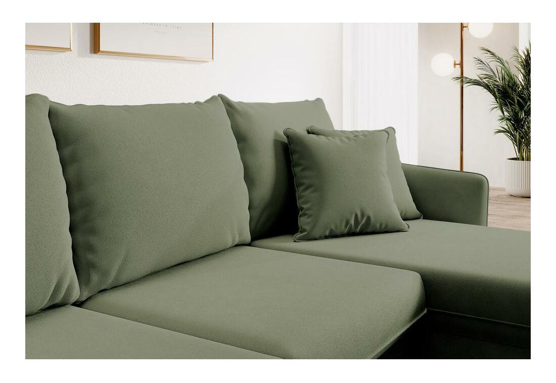 ZobrazitHledáte recept na úspěšné uspořádání menšího prostoru? Tak to jste na správném místě! Krásná rohová pohovka vám pomůže vytvořit skutečnou kompozici. Rohová pohovka je návrhem, který vzbuzuje obdiv svou minimalistickou formou, která jasně ukazuje inspiraci z klasických aranžmá. Vysoké, téměř obdélníkové polštářky zádové opěrky dostatečně podepřou vaše záda a pohodlné opěradlo vám umožní zasloužený odpočinek. Povrch nábytku je vyplněn pěnou a vlnitými pružinami, takže je dostatečně měkký, aby bylo jeho používání mimořádně příjemné, a zároveň dostatečně pružný, aby nedocházelo k deformacím. Díky zabudované funkci spaní na základě praktického systému rozkladu DL snadno přeměníte kus nábytku na prostornou postel, kde můžete přespat hosty nebo zorganizovat setkání pro větší skupinu Podrobnosti o produktu: rám je vyroben z kombinace dřeva a dřevotřísky, díky čemuž je konstrukce odolná vůči deformaci, sedátko vyplněné vlnitými pružinami a pěnou T3037 je pružné a po použití se rychle vrátí do původního tvaru, nábytek je univerzální, můžete liblně měnit jeho stranu, kontejner. na povlečení je standard, polštáře lze vyjmout, volně stojící model - má čalouněná záda, sada obsahuje dekorační polštáře, výška opěradla: 88 cm, šířka opěradla: 223 cm, výška područky: 64/75 cm, čalouněný nábytek s látkou Magic Velvet 2243 v odstínu šalvěj Magic Velvet je stylový samet s jemným leskem Odolný vůči tření, žmolkování a světlu. Waterproof Technology způsobuje, že kapalina kondenzuje na povrchu materiálu ve formě kapek Animal-friendly Technology, která je zodpovědná za zvýšenou odolnost látky zpomalující hoření.