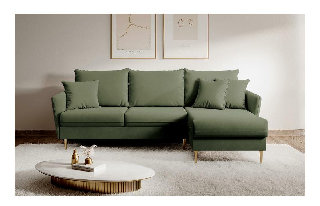 Rohová sedací souprava Vivaldio L (olivová + zlatá)