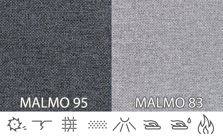 Malmo je látka odolná vůči žmolkování a vůči slunečnímu záření – nevybledne. Je trvanlivá a dokonale se hodí pro čalounění nábytku nebo polštářů. Je příjemná na dotek. Nesmí se vystavovat vysokým teplotám, chlorovat ani prát na mokro. Nepoužívat agresivní čistící prostředky.