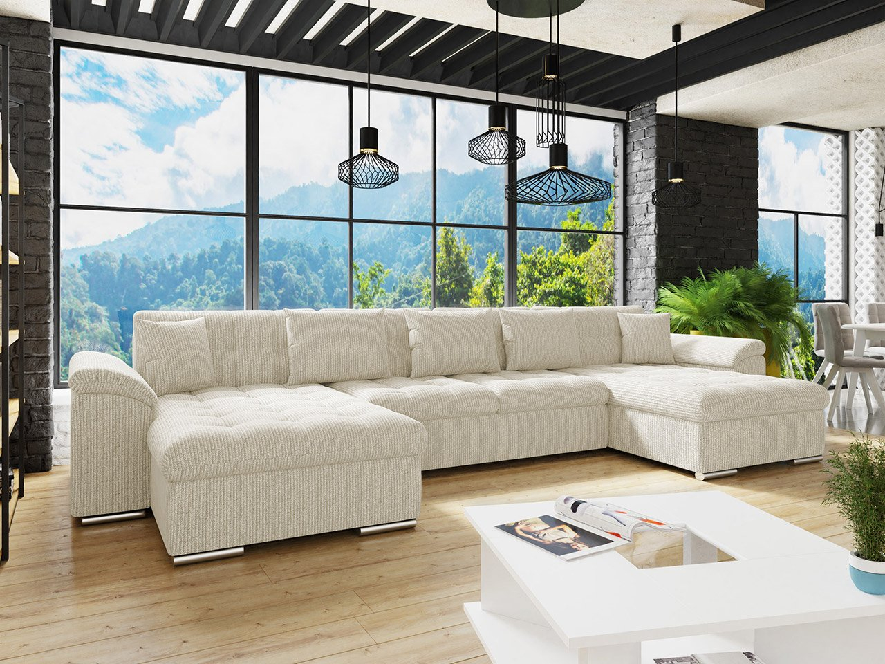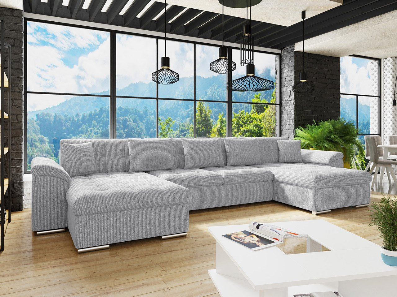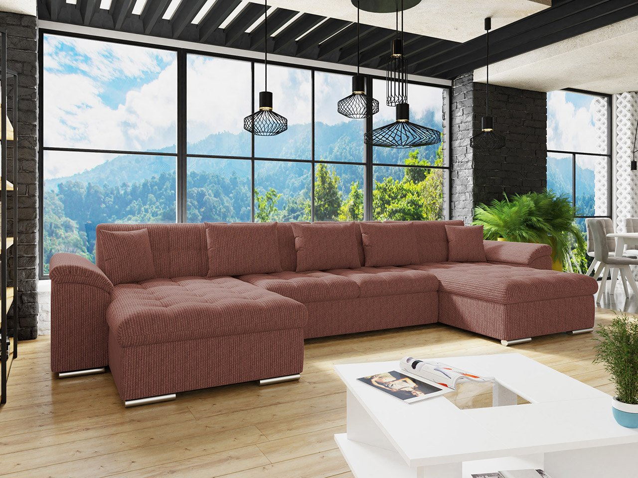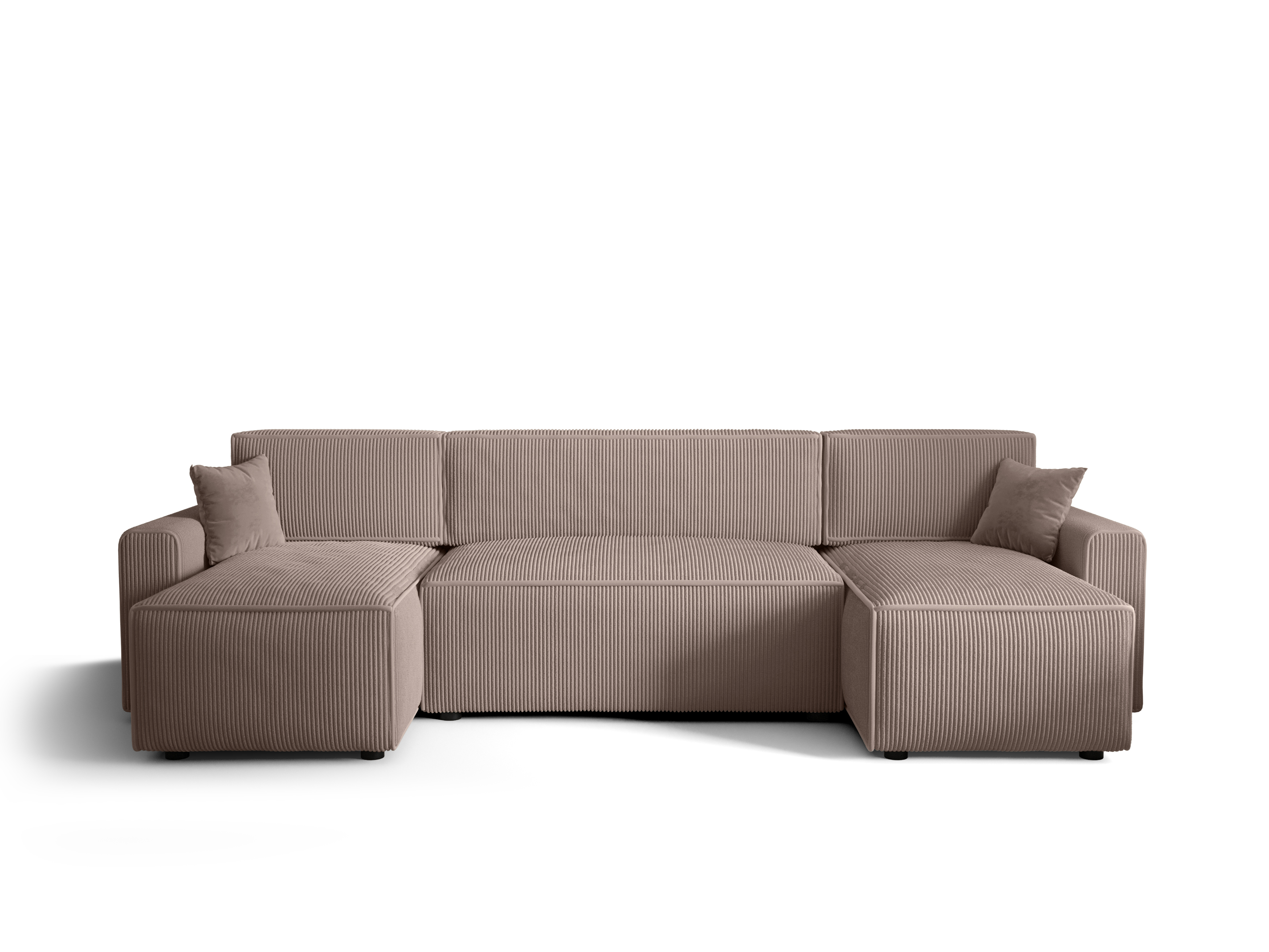 Rohová sedací souprava je ideální volbou pro ty, kteří hledají pohodlí a styl. Rohová sedací souprava Wicenza se ideálně hodí pro klasické a moderní prostorné interiéry. Byla vytvořena ve tvaru písmene "U", díky čemuž její využitelná plocha je opravdu velká. Prošívaná sedací část, v některých variantách je vyrobena z eko kůže a chromové nožky jí dodávají jedinečný a moderní vzhled. Rohová sedací souprava je rozkládací, ale nemá úložný prostor. Po rozložení vytváří velmi velký povrch, na kterém můžete pohodlně odpočívat. Ideální je vhodná i na spaní. Polštáře, které vidíte na obrázku jsou pevně připojeny k sedací soupravě. Rohová sedací souprava zůstal wyposażony w drewniany stelaż, a całość wykonano z płyty wiórowej. Rozměry: délka: 375 cm šířka: 155 cm výška: 76 cm rozměr rozložené plochy: 315x130 cm Dostupné potahy: možnost výběru zde Výběr strany: rohová sedací souprava symetrická (obě strany jsou v stejné délce) Vyrobeno: dřevěný rám + dřevo funkce rozložení, bez úložného prostoru, přední nožky - plastové (chrom) / zadní plastové (černé), čalouněná opěrka natrvalo připevněná, v ceně jsou zahrnuty polštáře, polštáře na zip, zadní část sedačky je čalouněná Záruční doba: 24 měsíců