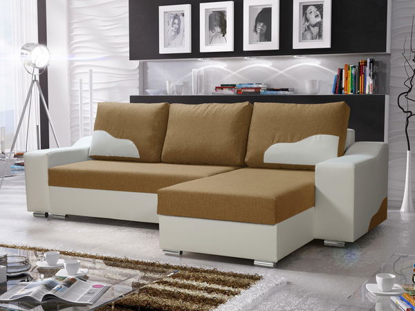 Rohová sedačka Wisteria (béžová + bílá) (P) o výšce 89 cm a hloubce 160 cm je moderním doplňkem vašeho interiéru. Barevná kombinace tkaniny a ekokůže působí luxusně. Sada obsahuje tři velké polštáře pro pohodlné opření, opěrky rukou jsou pohodlné. Konstrukce sedačky z masivního dřeva, dřevotřísky a překližky stojí na nízkých kovových nožičkách. Výplň tvoří polyuretanová pěna o hustotě 28 kg/m³. Plocha spaní 200 x 130 cm. Výška sezení je 40 cm, výška opěradla je 50 cm. Sedačka je rozkládací a disponuje úložným prostorem ve formě 2 boxů. Přední nožičky jsou z chromu, zadní jsou z plastu. Tkanina Sawana s gramáží 340g/m +/- 5% je odolná s jemnou strukturou, ideální na čalounění pohovek a postelí. Test oděruvzdornosti Martindale dosahuje 45 000 cyklů. Ekokůže Mandarin MA je měkká, flexibilní a odolná s gramáží 440g/m³. Test oděruvzdornosti Martindale dosahuje 30 000 cyklů. Sada je balena do tří balíků, jejich rozměry jsou: Balíček 1: 72x81x158 cm - 43 kg, Balíček 2: 58x91x148 cm - 52 kg, Balíček 3: 65x53x94 cm - 30 kg.