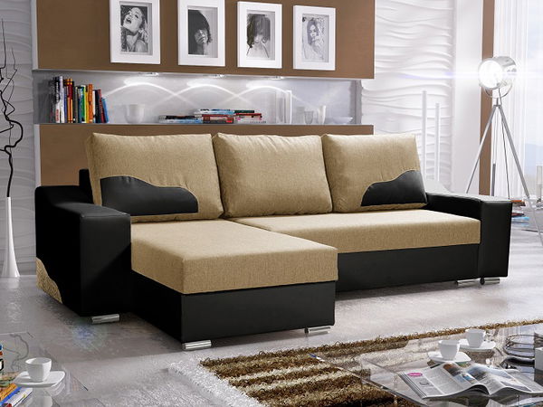 Rohová sedačka Wisteria (béžová + černá) (L) o výšce 89 cm a hloubce 160 cm je ideálním doplňkem do vašeho obývacího prostoru. Tato moderní sedací souprava kombinuje tkanou látku a ekokůži, čímž zajišťuje nejen pěkný vzhled, ale také luxusní pocit. Sedačka je vybavena třemi velkými polštáři pro pohodlné opření. Opěrky rukou jsou pohodlné a celá konstrukce stojí na nízkých kovových nožičkách. Tato rohová sedačka má také úložný prostor a je rozkládací. Konstrukce je vyrobena z masivního dřeva, dřevotřísky a překližky s výplní z polyuretanové pěny. Plocha spaní je 200 x 130 cm a výška sezení je 40 cm. Sedačka má také přední nožičky z chromu a zadní z plastu. Tkanina Sawana s gramáží 340g/m +/-5% je odolná a má jemnou strukturu. Test oděruvzdornosti Martindale dosahuje 45 000 cyklů. Ekokůže Mandarin MA je měkká, flexibilní, odolná a barvostálá s testem oděruvzdornosti Martindale 30 000 cyklů. Sedačka se skládá ze tří balíků o celkové hmotnosti 125 kg.