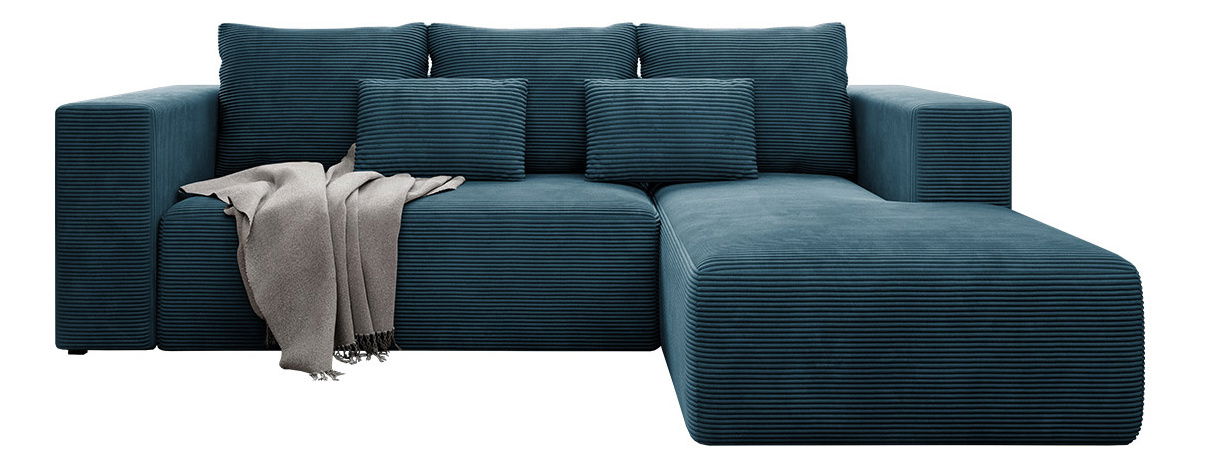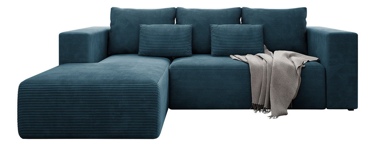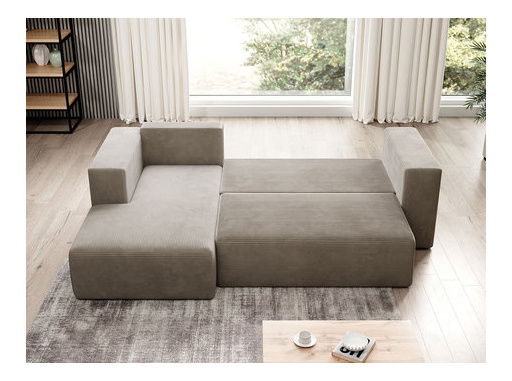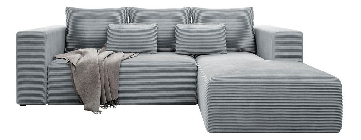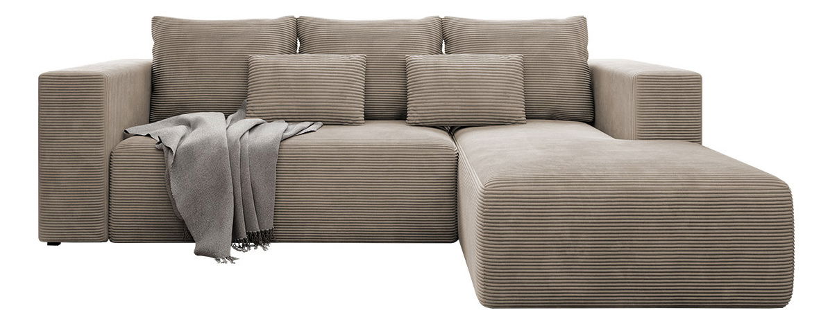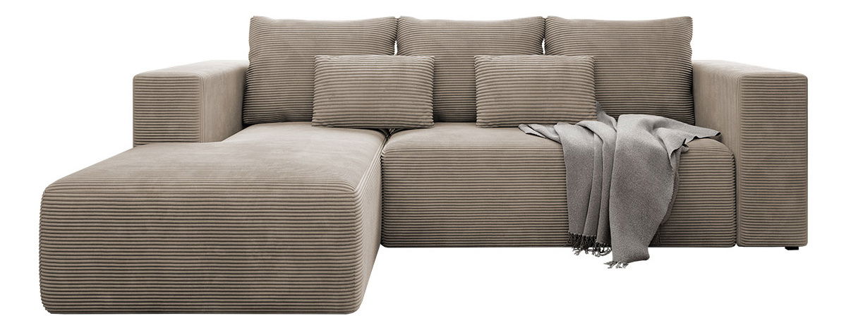 ZobrazitRohová rozkládací sedačka je ideální volbou pro ty, kdo hledají pohodlí a styl. Moderní rohová sedačka Zozolie vnese útulnost do každé místnosti. Jako centrální součást dekoru zdobí prostor, dodává mu moderní charakter a zvyšuje funkčnost obývacího pokoje. Žebrované čalounění se perfektně hodí ke každému dekoru. Zvlášť vyzdvihuje kouzlo skandinávských, moderních a rustikálních interiérů. Další praktickou výhodou nábytku je možnost rozložení. Jednoduchost přípravy místa na spaní podporuje speciální stroj. S jeho pomocí pohovku rychle rozložíte a složíte. Rohová sedačka ve tvaru L má také úložný prostor. Polštáře a v něm umístěné peřiny jsou skvělou zásobou, pokud potřebujete ubytovat hosty přes noc. Rozměry: délka: 255 cm, šířka: 161 cm, výška: 91 cm, plocha na spaní: 205 x 121 cm, rozměry kontejneru: délka: 132 cm, šířka: 61 cm, výška: 23 cm Rohová strana: levá nebo pravá Provedení: rám vyrobený ze dřeva T0 pružina typu A, opěradlo: T30 pěna, roh je rozvinutý, automatický rozkládací stroj typu DL, s funkcí spánku, má nádobu na podestýlku, černé plastové nohy, roh typu L, zádová opěrka ve formě pohyblivých polštářů na zip, polštáře plněné pěnovými granulemi, volně stojící roh (hřbet