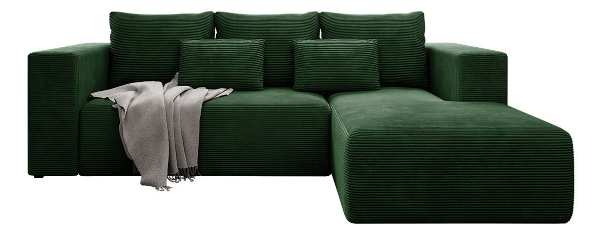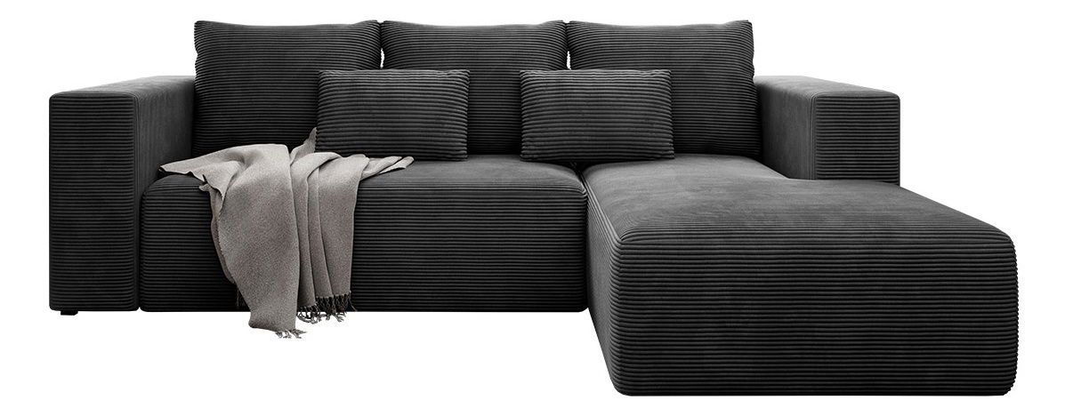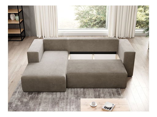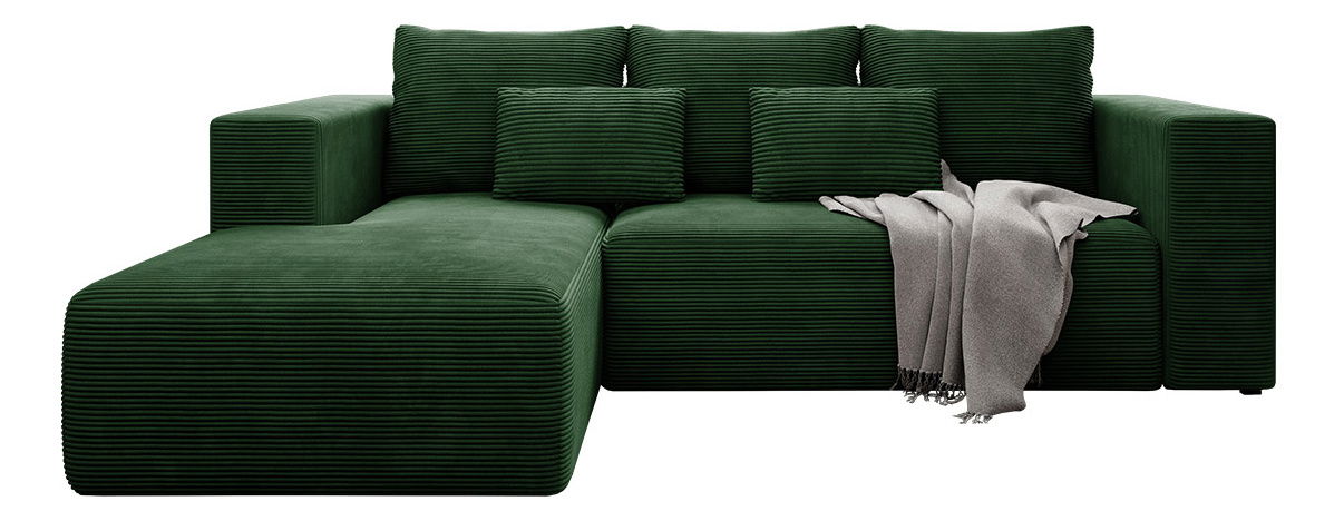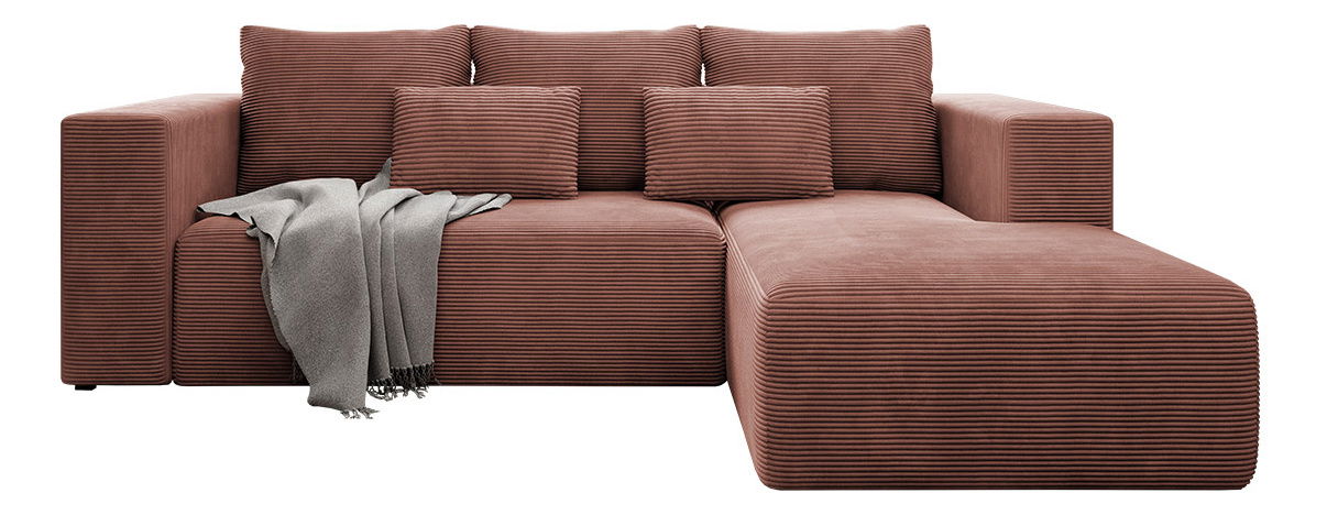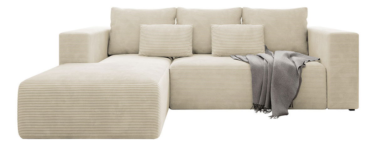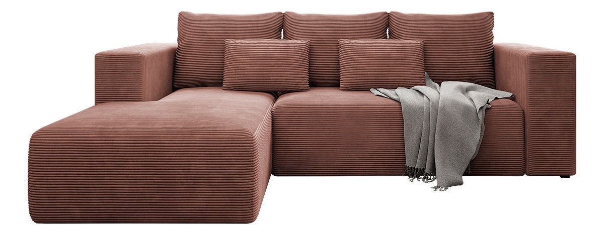 ZobrazitRohová rozkládací sedačka je ideální volbou pro ty, kdo hledají pohodlí a styl. Moderní rohová sedačka Zozolie vnese útulnost do každé místnosti. Jako centrální součást dekoru zdobí prostor, dodává mu moderní charakter a zvyšuje funkčnost obývacího pokoje. Žebrované čalounění se perfektně hodí ke každému dekoru. Zvlášť vyzdvihuje kouzlo skandinávských, moderních a rustikálních interiérů. Další praktickou výhodou nábytku je možnost rozložení. Jednoduchost přípravy místa na spaní podporuje speciální stroj. S jeho pomocí pohovku rychle rozložíte a složíte. Rohová sedačka ve tvaru L má také úložný prostor. Polštáře a v něm umístěné peřiny jsou skvělou zásobou, pokud potřebujete ubytovat hosty přes noc. Rozměry: délka: 255 cm, šířka: 161 cm, výška: 91 cm, plocha na spaní: 205 x 121 cm, rozměry kontejneru: délka: 132 cm, šířka: 61 cm, výška: 23 cm Rohová strana: levá nebo pravá Provedení: rám vyrobený ze dřeva T0 pružina typu A, opěradlo: T30 pěna, roh je rozvinutý, automatický rozkládací stroj typu DL, s funkcí spánku, má nádobu na podestýlku, černé plastové nohy, roh typu L, zádová opěrka ve formě pohyblivých polštářů na zip, polštáře plněné pěnovými granulemi, volně stojící roh (hřbet