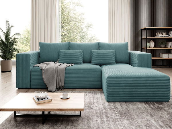 ZobrazitModerní rohová sedačka Zofia vnese útulnost do každé místnosti. Jako centrální součást dekoru zdobí prostor, dodává mu moderní charakter a zvyšuje funkčnost obývacího pokoje. Žebrované čalounění se perfektně hodí ke každému dekoru. Zvlášť vyzdvihuje kouzlo skandinávských, moderních a rustikálních interiérů. Další praktickou výhodou nábytku je možnost rozložení. Jednoduchost přípravy místa na spaní podporuje speciální stroj. S jeho pomocí pohovku rychle rozložíte a složíte. Rohová sedačka ve tvaru L má také úložný prostor. Polštáře a v něm umístěné peřiny jsou skvělou zásobou, pokud potřebujete ubytovat hosty přes noc.