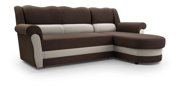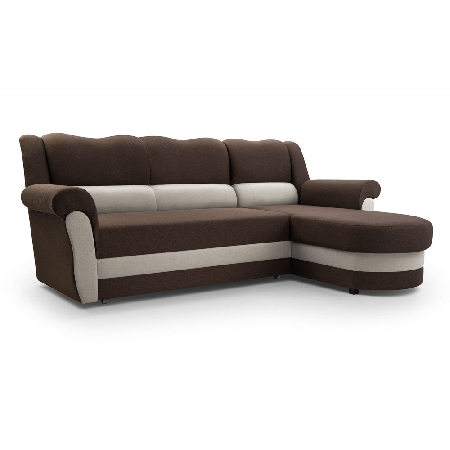 Rohová sedačka Burdur (tmavě hnědá + béžová) (P) výška 97 cm hloubka 170 cm Bahama 08 + Bahama 33 je ideální volbou pro ty, kteří hledají pohodlné sezení a praktické řešení pro hosty. Rám sedačky je vyroben z masivního dřeva a dřevotřísky, což zaručuje vysokou kvalitu a trvanlivost. Sedadlová část sestává z bonellové pružiny a pěny T 30 o tloušťce 10 cm, což zajišťuje pohodlné sezení. Podpůrný mechanismus otevírání umožňuje jednoduché provedení z sedačky na plochu spaní o velikosti 196 x 124 cm. Tento typ rozkladu je velmi praktický a pohodlný. V kombinaci s tmavě hnědou a béžovou barvou dodává sedačka vašemu obývacímu pokoji moderní a elegantní vzhled.