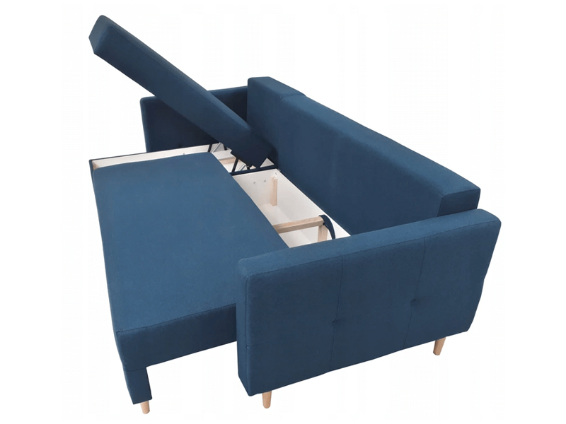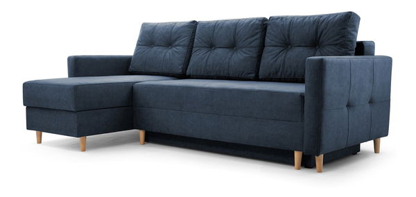 Rohová sedačka Meshire (modrá) (L) o výšce 96 cm a hloubce 146 cm, vzhled 24, je ideální pro moderní domov. Rám sedačky je vyroben z masivního dřeva a dřevotřísky, čímž zaručuje maximální pevnost a trvanlivost. Sedadlová část obsahuje bonellovou pružinu (tloušťka drátu - 2,4 mm) a pěnovou výplň T 30 o tloušťce 3 cm, která zajišťuje pohodlné sezení. Opěradlová část je vyplněna pěnou a silikonem, čímž se zaručuje pohodlné opření. Podpůrný mechanismus otevírání zajišťuje snadné rozložení sedačky na plochu spaní o velikosti 209 x 140 cm. Sedačka je zezadu potažena látkou, což z ní činí všestranný kus nábytku, který se hodí do každé místnosti. S typem rozkladu delfín, tato rohová sedačka je ideální pro každého, kdo hledá pohodlné a funkční řešení pro své domácnosti.