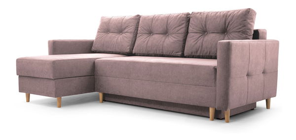Rohová sedačka Meshire v růžové barvě (velikost L) je ideálním doplňkem každého obývacího prostoru. S výškou 96 cm a hloubkou 146 cm nabízí pohodlné místo k sezení pro celou rodinu. Materiál rámu sedačky je z masivního dřeva a dřevotřísky, což zaručuje jeho pevnost a trvanlivost. Sedadlová část obsahuje bonellovou pružinu o tloušťce drátu 2,4 mm, která je kombinována s pěnou T30 o tloušťce 3 cm pro maximální pohodlí. Opěradlová část je také vyrobena z pěny a silikonu. Sedačka má podpůrný mechanismus otevírání, který umožňuje její jednoduchou transformaci na plochu spaní 209 x 140 cm pomocí typu rozkladu delfín. Tato moderní sedačka je potažena látkou a může být umístěna i volně v místnosti, jelikož je zezadu dokonale provedena.