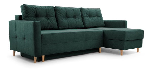 Rohová sedačka Meshire (zelená) o výšce 96 cm a hloubce 146 cm je skvělou volbou pro váš obývací prostor. Sedačka je vyrobena z masivního dřeva a dřevotřísky, které zaručují její kvalitu a dlouhou životnost. Sedadlová část obsahuje bonellovou pružinu o tloušťce drátu 2,4 mm a pěnou T 30 o tloušťce 3 cm, zatímco opěradlová část obsahuje pěnovou výplň s přidaným silikonem pro pohodlné sezení. Sedačka má podpůrný mechanismus otevírání pro pohodlné rozkládání do delfínového typu. Povrch sedačky je potažen látkou stejně jako její zadní část. Plocha spaní je 209 x 140 cm, čímž je zaručena dostatečná plocha pro pohodlný spánek. Sedačka je vyrobena v looku 20 a je skvělým doplňkem pro váš domov.