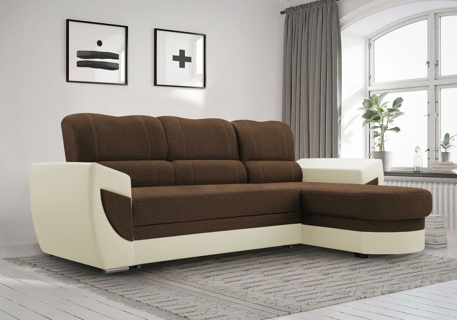 Rohová sedacia súprava Trento (tmavohnědá + béžová) (P)