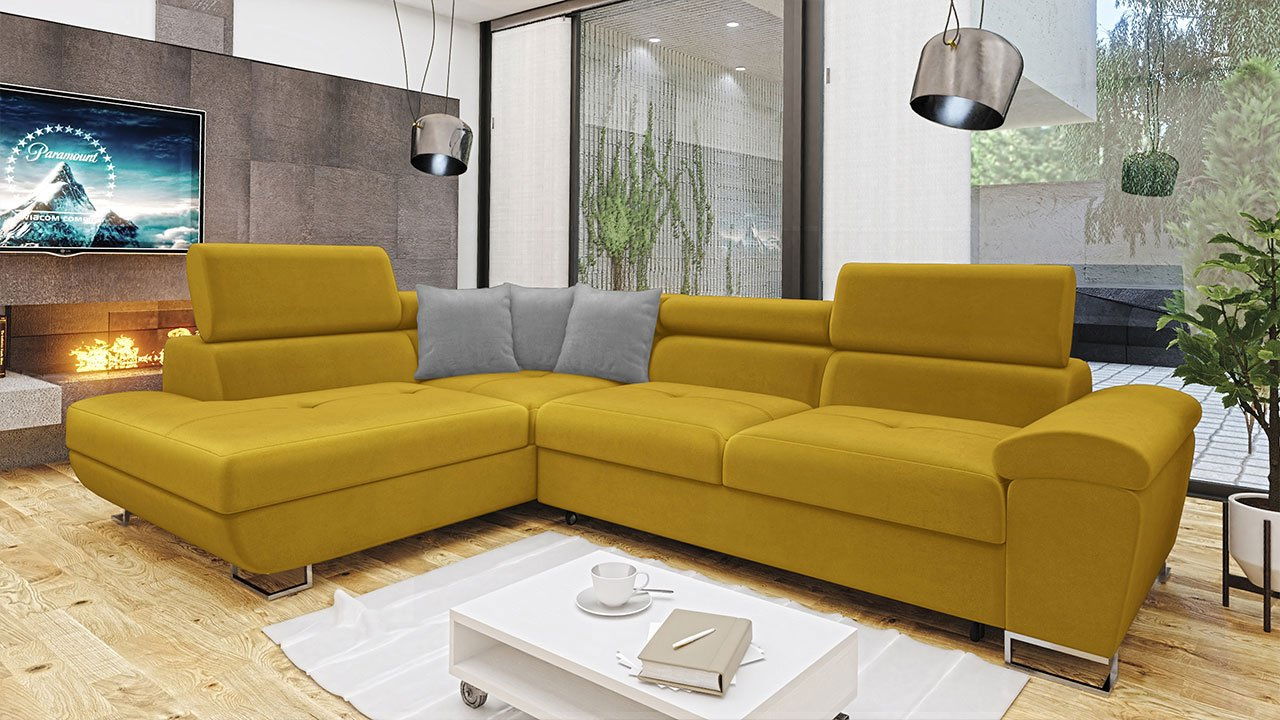 ZobrazitRohová pohovka Alphard je luxus na dosah ruky, který se může trvale usadit ve vašem obývacím pokoji. Stylová rohová sedačka Začněme s tím, co vidíte na první pohled, a to je design. Rohová sedačka Alphard je uměním moderního designu. Lehkost získává díky chromovaným nohám ve stříbrné barvě. Kromě toho si nemůžete nechat ujít 20 nejmódnějších barevných kombinací, ve kterých je rohová sedačka k dispozici. Moderní design doplňuje funkce spánku, prostorný kontejner na ložní prádlo a nastavitelné opěrky hlavy pro uvolnění krku.