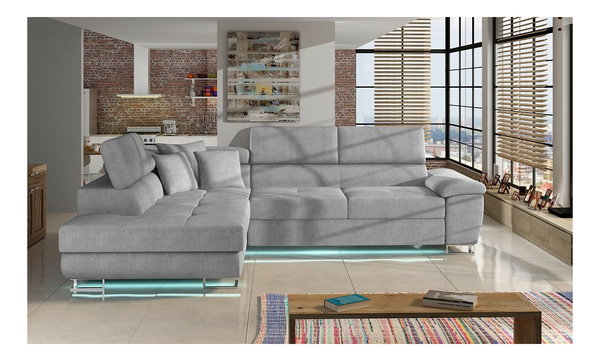 Rohová sedačka do obývacího pokoje Alvan LED osloví lidi, kteří se zaměřují na moderní řešení. Jejím prvním charakteristickým rysem je LED RGB osvětlení. Barvu osvětlení LED si vyberete pomocí dálkového ovladače, který je součástí soupravy. Použité LED osvětlení se postará o náladu ve vaší místnosti a zdůrazní elegantní tvar sedačky. Rohová sedačka je navržena jako písmeno L. Její opěradlo je ukončeno nastavitelnými opěrkami hlavy, které zpříjemní váš pobyt. Další výhodou sedačky je inovativní pěna použitá v sedadle, díky čemuž je měkká a pohodlná. Po rozložení má sedačka rozměry 195 x 125 cm.