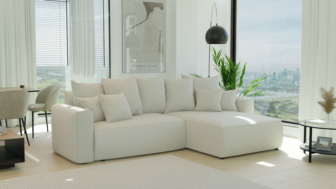 Rohovou pohovku nadměrně nezatěžujte, abyste předešli jejímu poškození. Rohová pohovka by měla být umístěna na rovném povrchu a měla by se vyhýbat nerovným nebo mokrým podlahám. Tento výrobek není určen k použití v prostorách s vysokou vlhkostí nebo vystavených intenzivním zdrojům tepla (např. sporáky, radiátory). Nevystavujte rohovou pohovku přímému slunečnímu záření, abyste předešli vyblednutí materiálu.