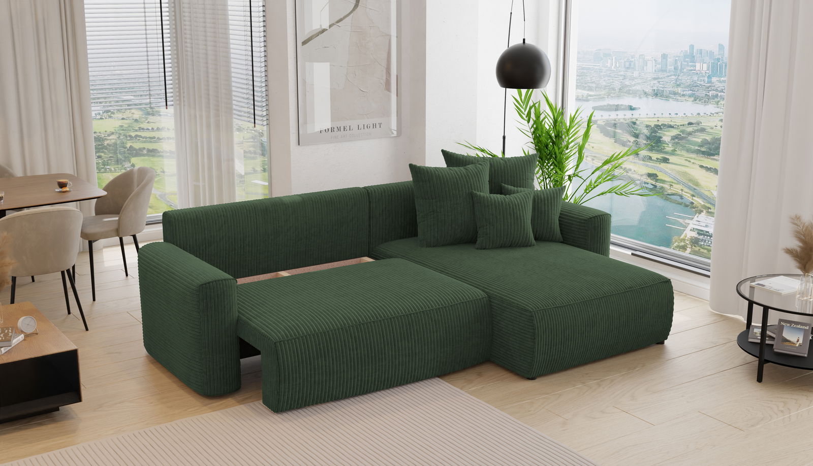 Rohová sedačka Baria (P) (tmavě zelená)