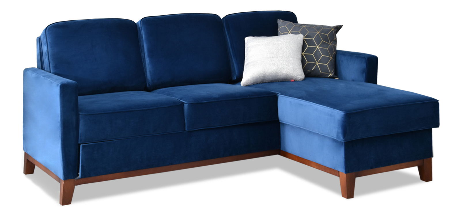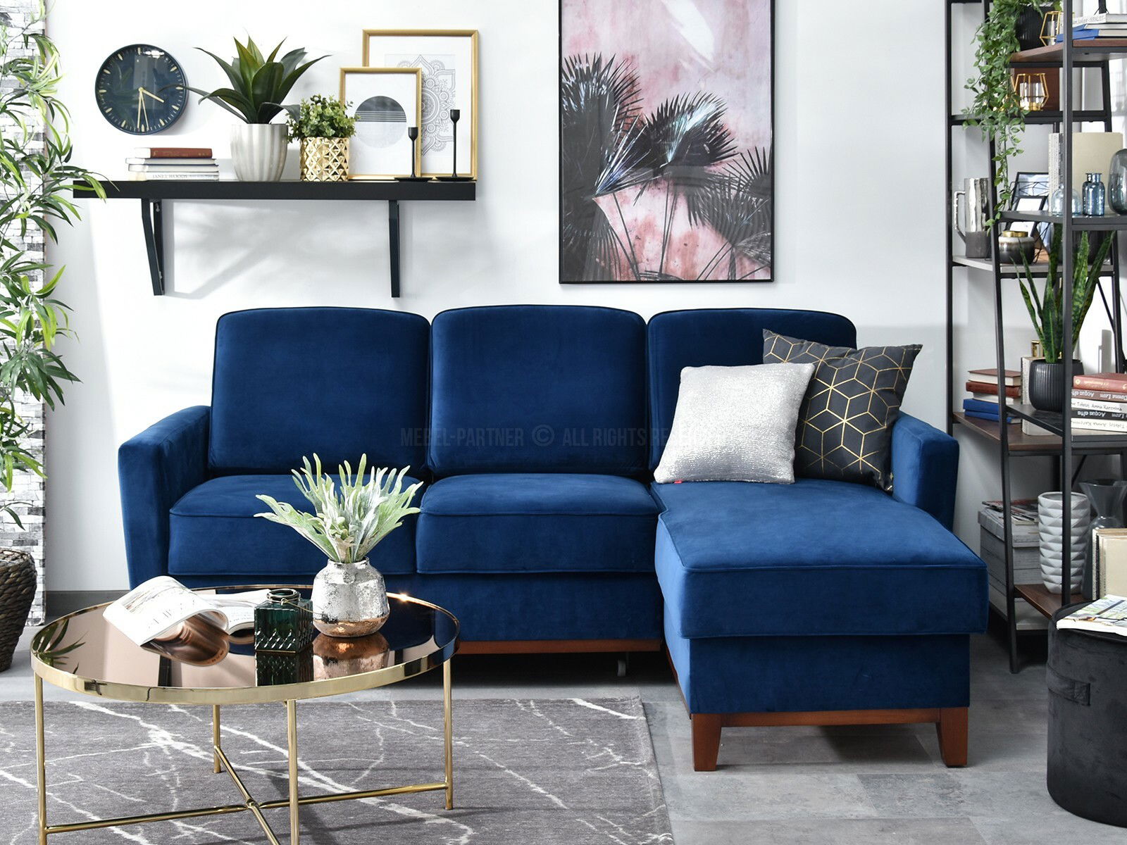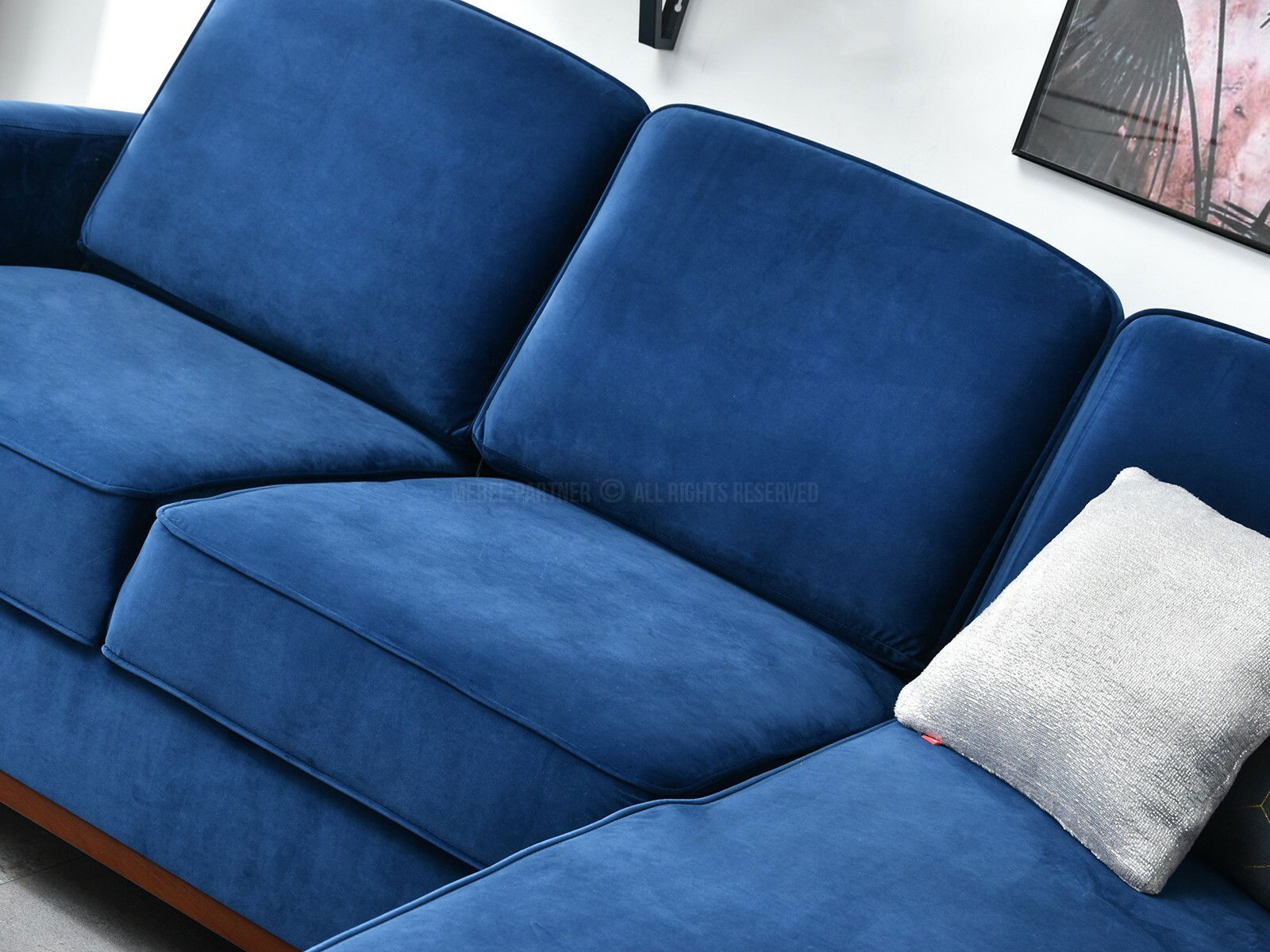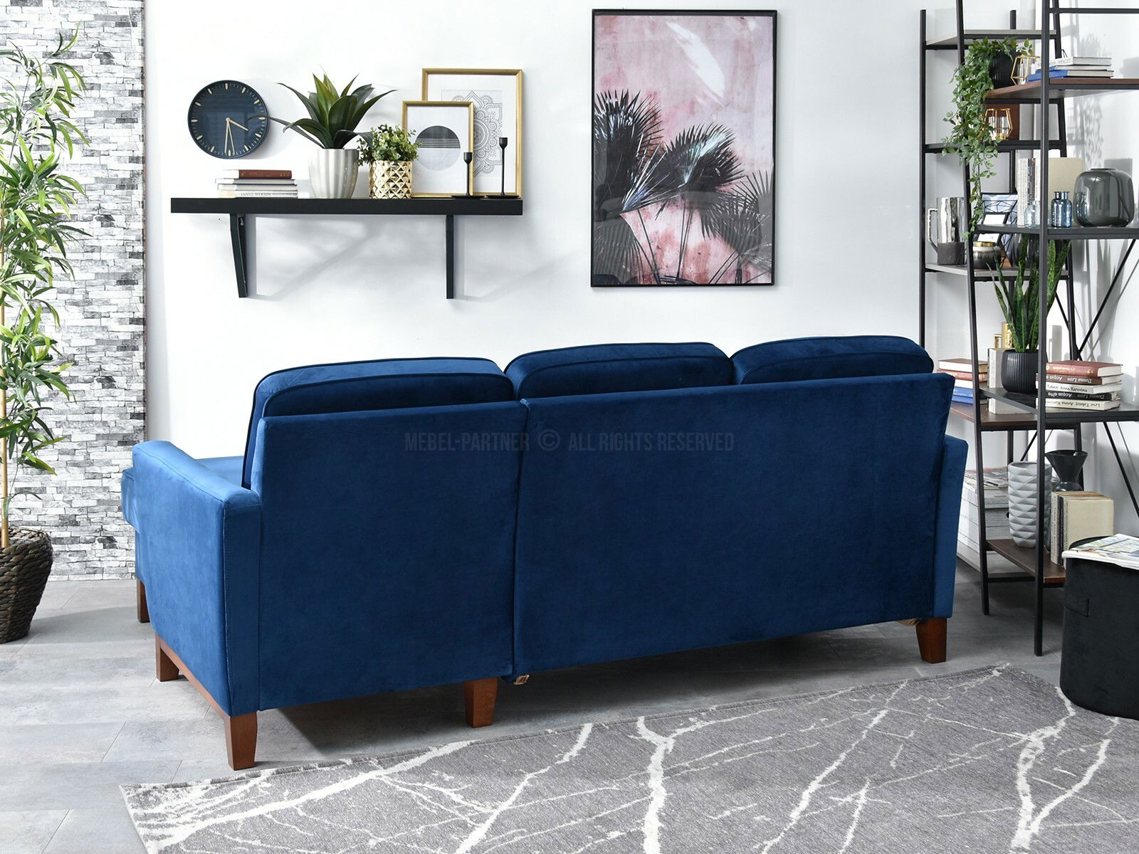 Rohová sedačka Biblioteca (tmavě modrá + ořech)
