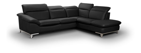 Rohová sedačka Teresa (černá) (P) s tkaninou Pampas schwarz M9003 je pohodlná sedačka s funkcí rozkladu a plochou spaní 208x124 cm, vhodná pro relaxaci, příležitostné spaní nebo posezení s přáteli. Výška sedáku je 46 cm a hloubka sedáku je 61 cm. Sedačka je vybavena polohovatelnými opěrkami a kovovými chromovými nohami. Polštáře nejsou součástí sedačky. Barva tkaniny se může lišit od barvy na monitoru. Sedačka se dodává v demontu.