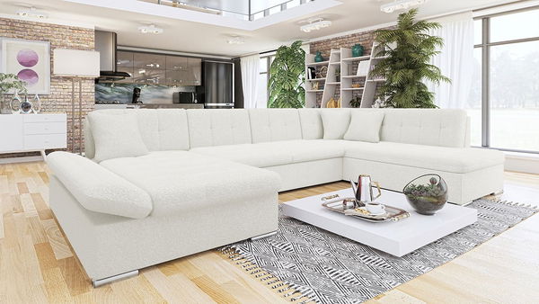 ZobrazitRohová sedací souprava je ideální volbou pro ty, kteří hledají pohodlí a styl. Genero má obrovskou plochu k sezení, praktické funkce a vysoce kvalitní tkaniny. Výhodou je i zabudovaná nastavitelná loketní opěrka, která zvyšuje pohodlí. Rohová rozkládací pohovka Genero poskytuje velké množství prostoru pro spaní – může nahradit ložnici. Má také zabudovaný praktický úložný prostor, který bude skvělým místem na ložní prádlo a sezónní oblečení. Jeho největší výhodou je, že patří do volně stojících sedaček, což znamená, že ji můžete umístit kdekoli v místnosti – má čalouněnou zadní část. Pokud jde o textilie, rohová sedačka Genero je vyrobena z vysoce kvalitních čalounických materiálů Toptextil Premium, které mohou vytvořit jedinečnou atmosféru v interiéru a zároveň jsou vynikající dekorací. Sedačka je k dispozici v několika nadčasových barvách, které dokonale ladí s vaším interiérem. Rozměry: délka: 345 cm šířka: 205 cm výška: 76 cm rozměr rozložené plochy: 302x128 cm Dostupné potahy: vyberte z dostupných potahů zde Výběr strany: levá nebo pravá Vyrobeno: dřevěný rám + dřevotřísková deska, polyuretanová pěna vlnitá pružina plastové (chrom) opěrka je ve formě polštářů, polštáře na zip, v ceně jsou zahrnuty polštáře, nastavitelná opěrka, zadní část sedačky je čalouněná Záruční doba: 24 měsíců