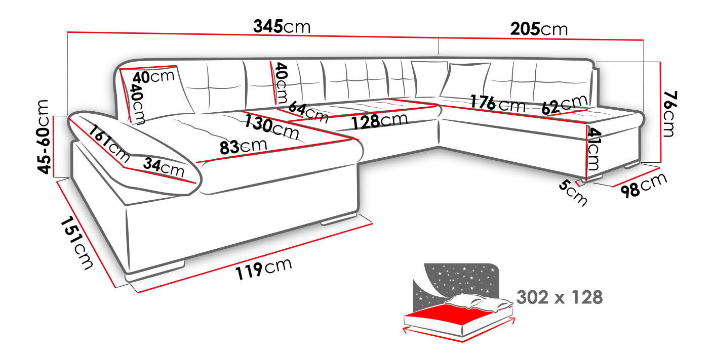 302 x 128 cm