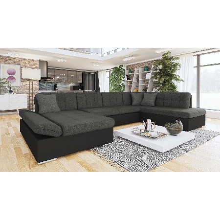 Rohová sedačka Calla (L) U (černá + tmavě šedá + šedá)
