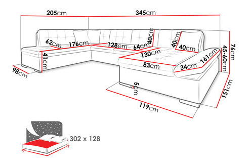 ZobrazitRohová sedačka je ideální volbou pro ty, kdo hledají pohodlí a styl. Hledáte sedačku, která bude reprezentativní součástí vašeho obývacího pokoje? Genero, rohová sedačka, určitě splní vaše očekávání. Sedačka Genero byla vyrobena podle vzoru písmene U, má dvě lehátka, která poskytují další sezení a působí jako pohodlný gauč na odpoledne. Je třeba věnovat pozornost loketní opěrce. Díky inovativnímu systému si můžete přizpůsobit svoji polohu podle svých potřeb. Další výhodou sedačky je funkce na spaní a velký úložný prostor na ložní prádlo. Rozměry: délka: 345 cm, šířka: 205 cm, výška: 76 cm, plocha na spaní: 302 x 128 cm rozměry úložného prostoru: délka: 147 cm šířka: 73 cm výška: 23 cm Rohová strana: levá nebo pravá Složení: dřevěný rám + dřevotříska, dřevěná rám + dřevotříska sedačka funkce spánku úložný prostor na ložní prádlo, polštáře jsou na zip a jsou v ceně pochromované plastové nohy, celočalouněná sedačka (vhoná do prostoru), nastavení loketní opěrky Záruka: 24 měsíců
