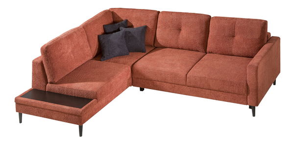 Rohová sedačka Cody (oranžová) (L) výška 93 cm hloubka 214 cm Oranžová + Černá je ideálním kouskem pro pohodlné sezení při rodinných setkáních nebo zábavě s přáteli. Sedačka je vyrobena z tkaniny Chatch Me 07, s hloubkou sedu 56 cm a výškou sedu 47 cm. Má funkci spaní a úložný prostor. Plocha spaní je 136x242 cm, s pružinami typu faliste a vysokoelastickou pěnou. Je možné si vybrat barvu a desku, přičemž některé barvy mohou být za příplatek. Ke změně nožiček se vyžaduje záloha 50%, přičemž vzorník ke stažení je k dispozici níže. Pro aktuální cenu se obraťte na naše operátory na klientském servisu mailem, chatem nebo telefonicky.