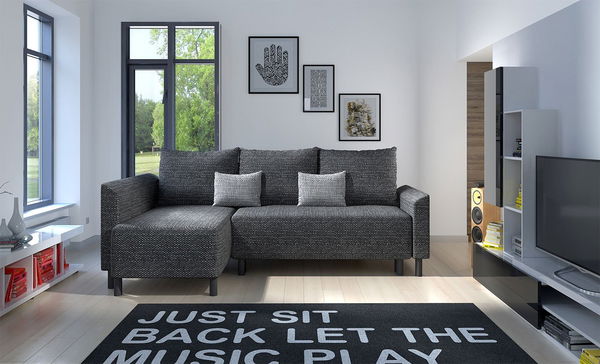 Módní rohová sedačka do obývacího pokoje Delvani v sobě spojuje jednoduchý styl a barvy, které jí a celé místnosti dodávají osobitý vzhled. Dekorativní hodnotu nábytku podporují ozdobné nožičky az funkčního hlediska mu dodávají také stabilitu. Rohová sedačka ve tvaru L skvěle poslouží v malém obývacím pokoji, záda potažená látkou dává téměř neomezené možnosti polohování nábytku iv prostornějším interiéru. Další výhodou nábytku je funkce spánku a vestavěný kontejner na lůžkoviny.