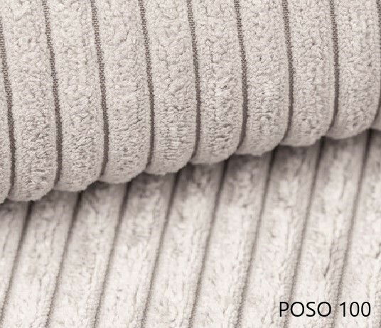 Tkanina Poso je čalounická látka se vzhledem struktury, vyrobená převážně z polyesteru s příměsí nylonu. Je měkká na dotek, odolná vůči oděru a světlu, vhodná na sedačky, křesla a polštáře. Čistí se jemně – nejlépe vlhkým hadříkem nebo speciálním prostředkem na čalounění, nesmí se prát v pračce, bělit ani vystavovat přímému slunci či silnému teplu.
