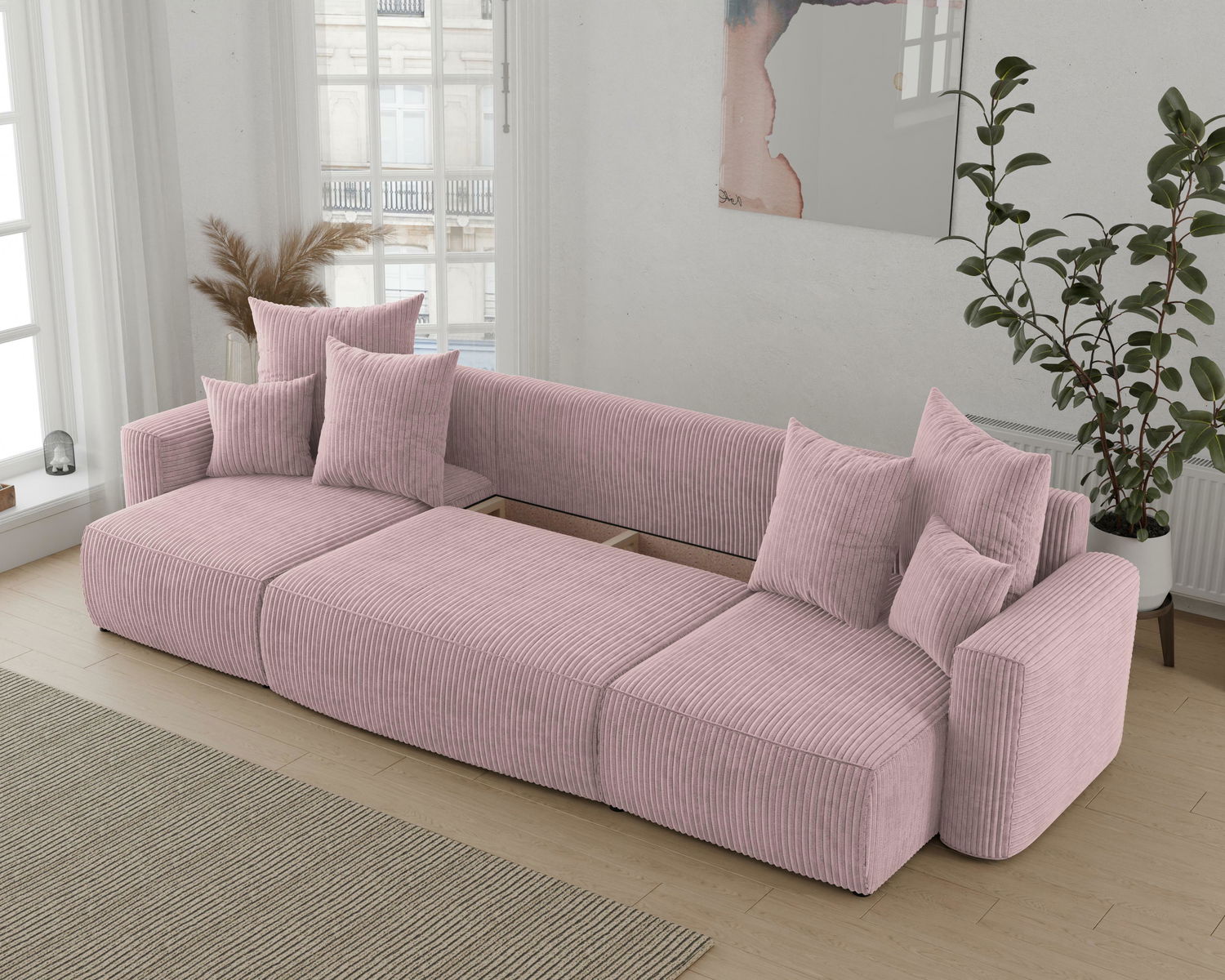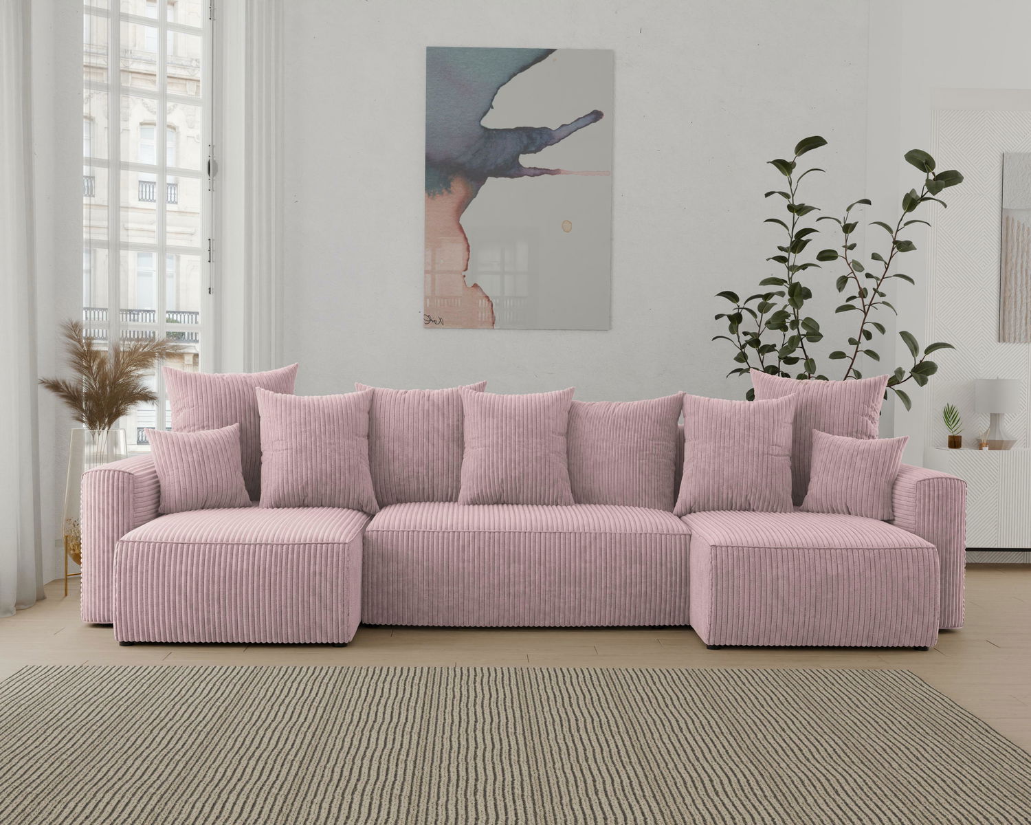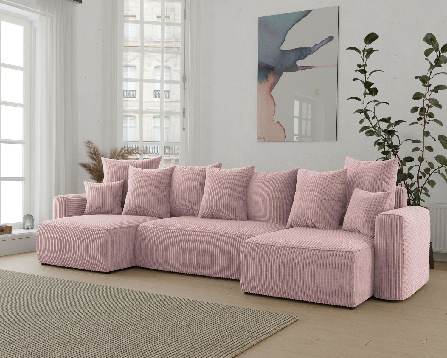 Rohová sedačka Denia U (pudrově růžová) (L)