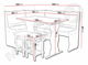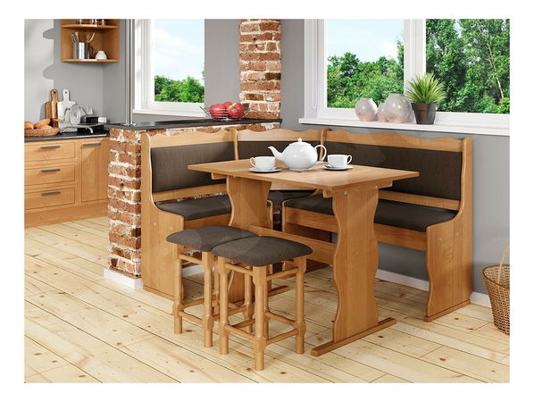 Sedací souprava je vyrobena z olšového dřeva. Čalouněné sedátka + molitan o tloušťce 2 cm. Čalouněná opěrka + molitan o tloušťce 1,5 cm. Základ stolu byl vyroben z olšového dřeva vrchní deska je o tloušťce 18 mm. Židle je vyrobena z olšového dřeva s čalouněným sedátka + molitan o tloušťce 2 cm. Sedací souprava má dva úložné prostory.