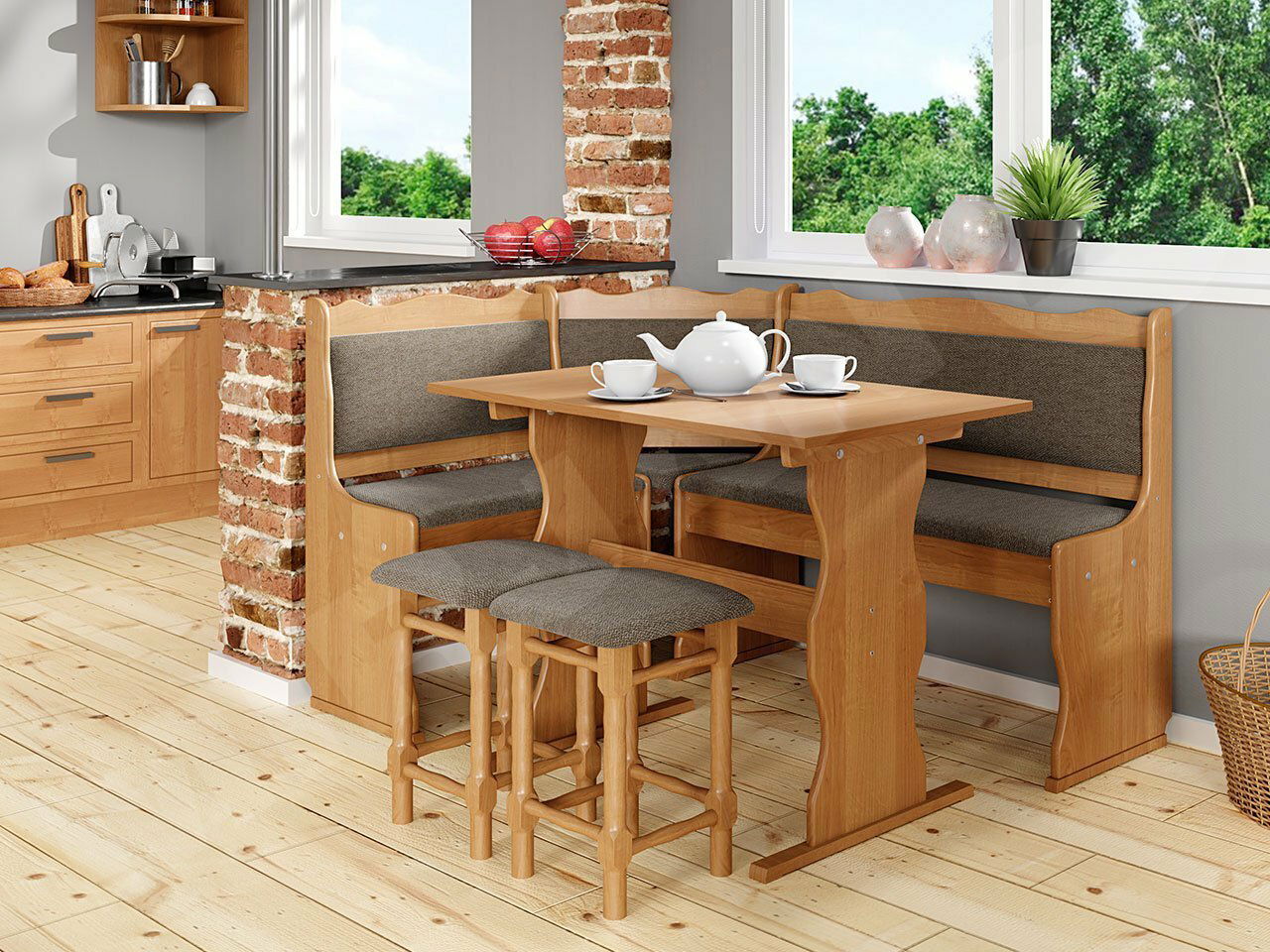 Rohová sedačka do kuchyně Meyana (olše) (peru 04) (se stolkem a taburetky)
