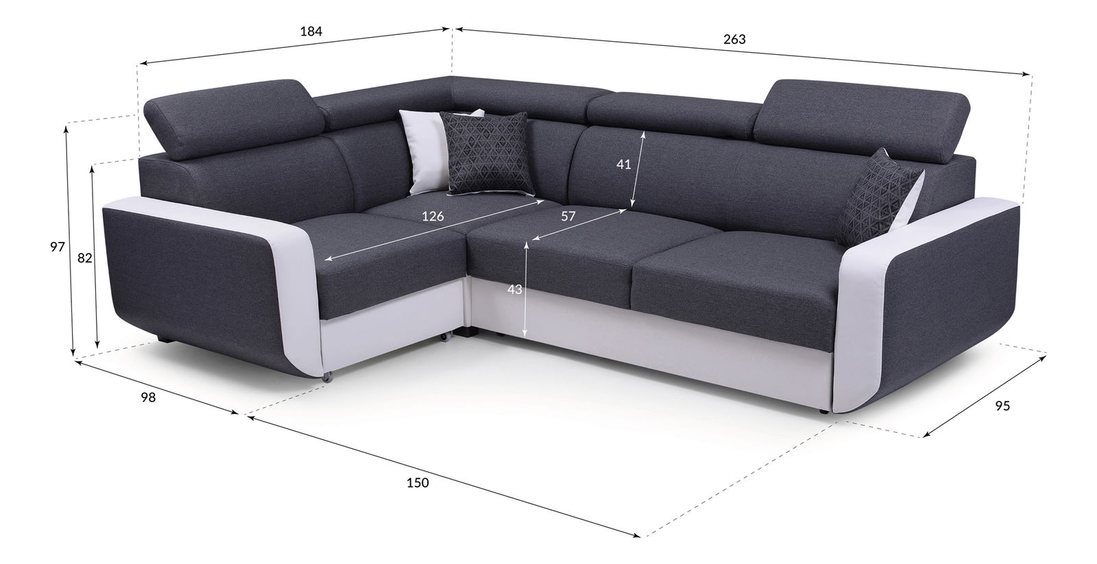 Rohová sedačka Elden (tmavě šedá + bílá) (P)
