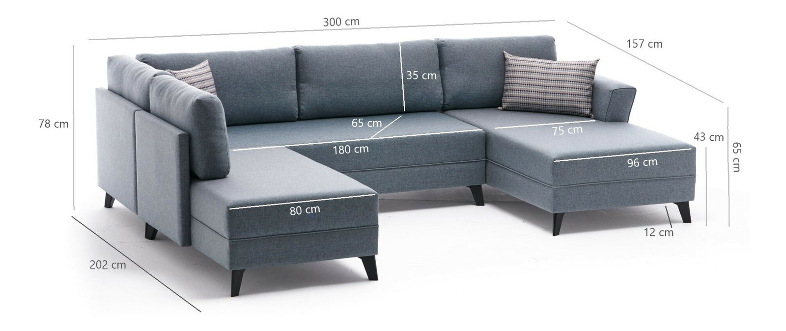 šířka: 300 cm výška: 78 cm hloubka: 202 cm