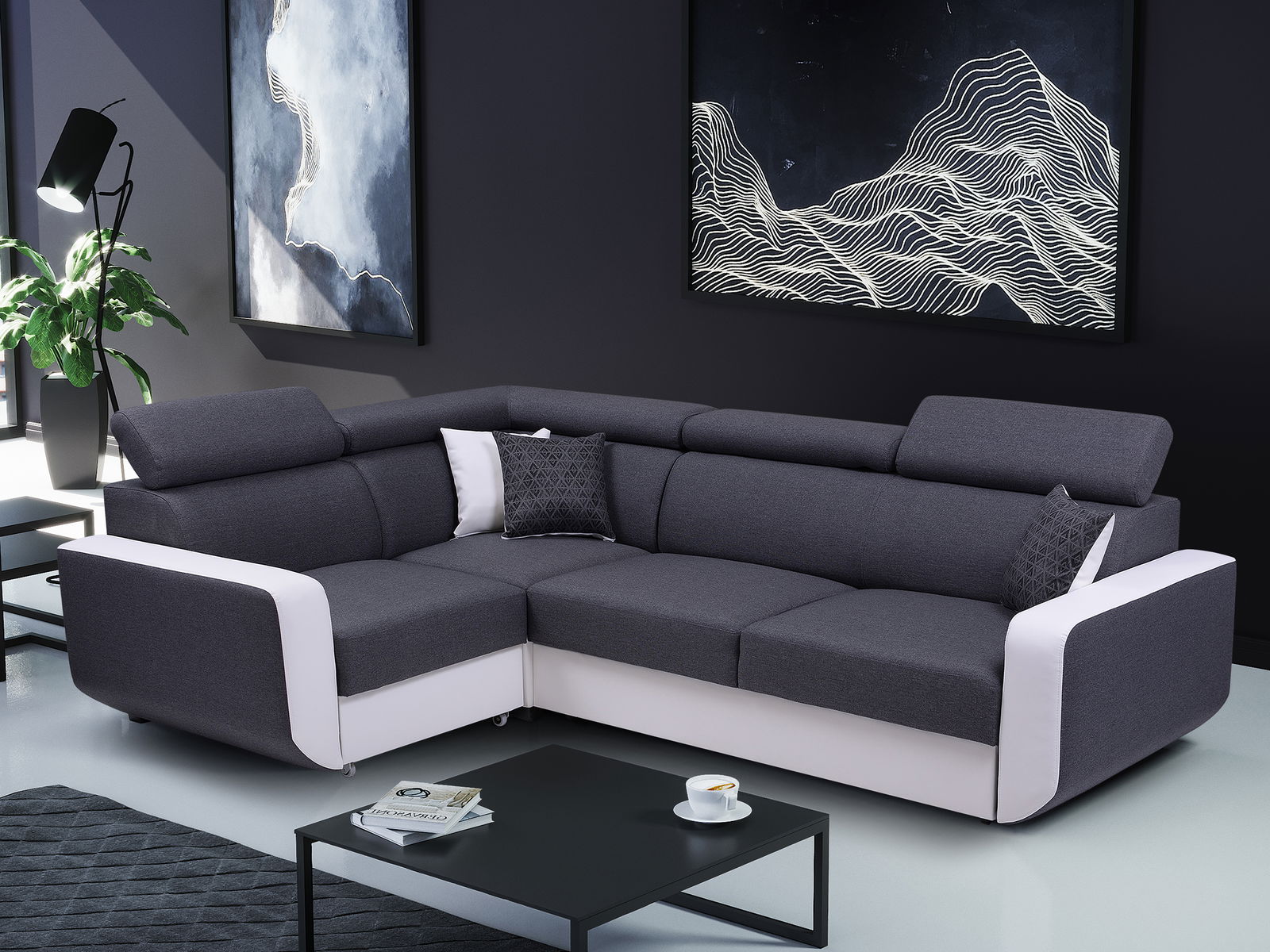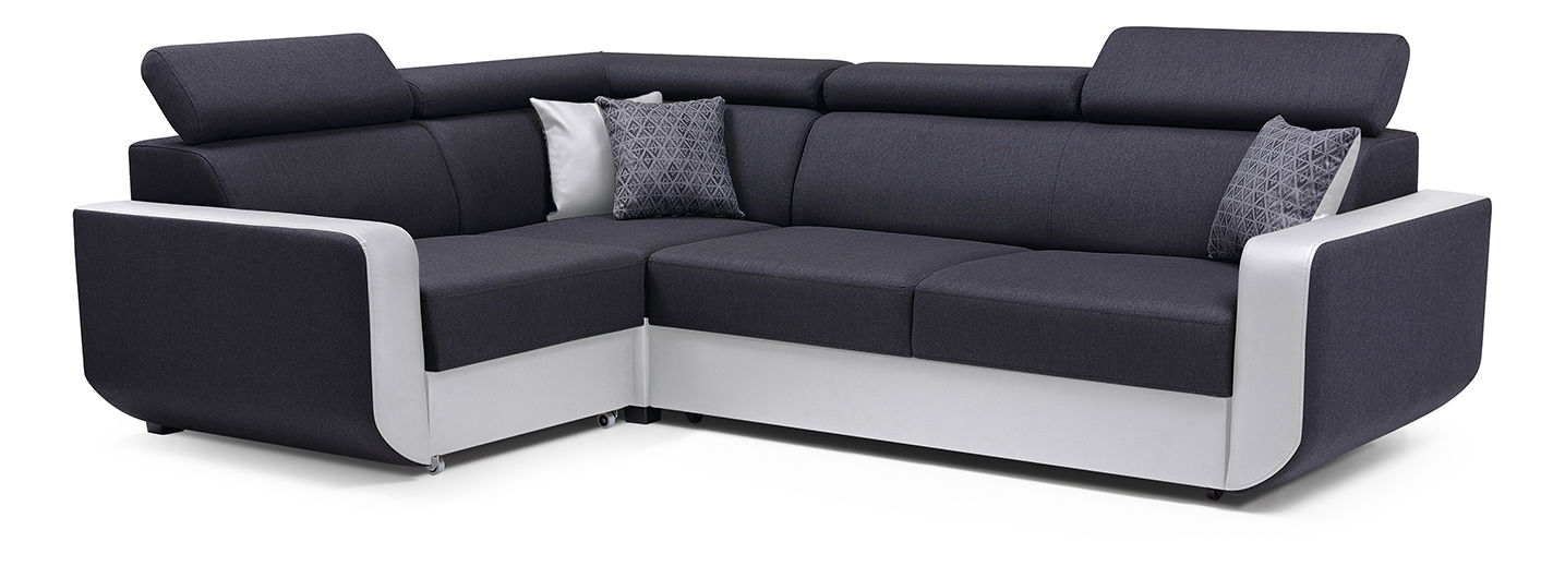 Rohová sedačka Enriko (tmavě šedá + bílá) (L)