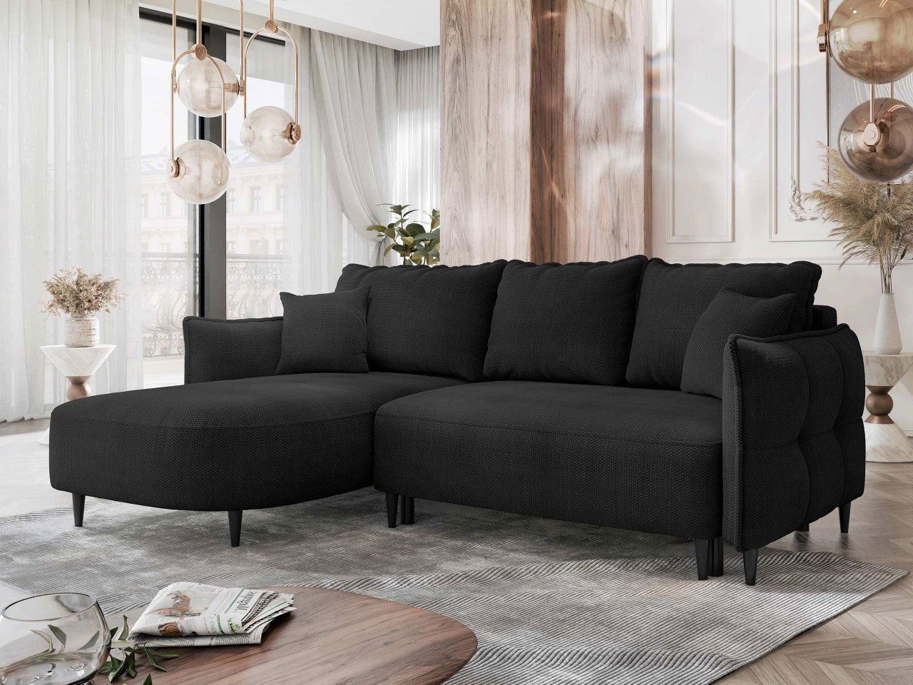 Rohová sedačka Evorde (černá) (s úl. prostorem) (L)