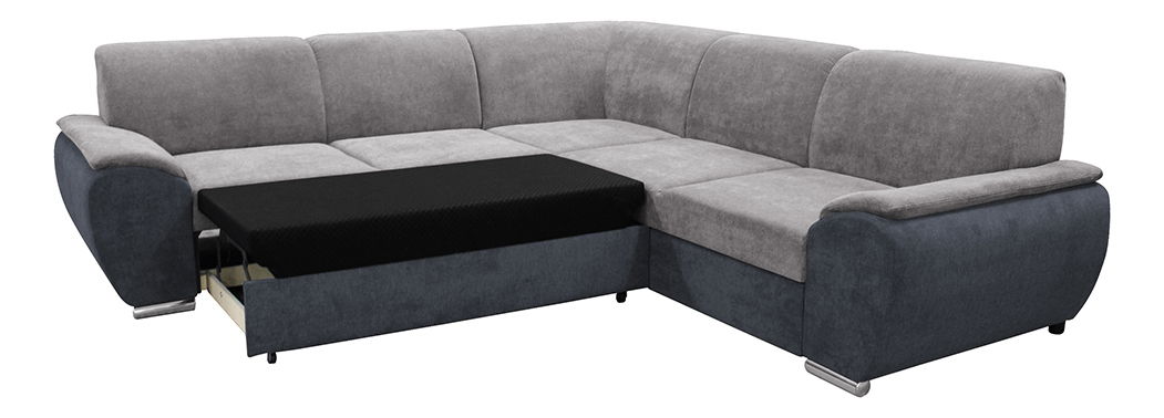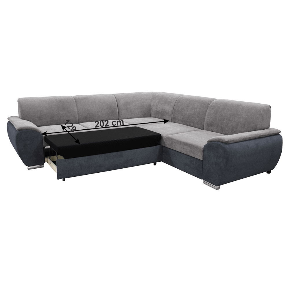 Rohová sedačka Emalla (P) v tmavě šedé a šedé barvě o celkové výšce 84 cm a hloubce 272 cm je ideální pro prostornější obývací místnosti. Kromě toho, že je celočalouněná, má také 5 malých polštářků, které dodávají dekorativní charakter. Tato sedačka je také rozkládací a nabízí dostatek plochy na spaní pro hosty. Materiál látka zaručuje příjemný pocit při sezení. Výška sedu je 43 cm a hloubka sedu je 63 cm. Spodní prostor od podlahy má výšku 5 cm. Plocha na spaní je 129 x 202 cm. Výplň sestává z pružiny Falista a Pur pěny, které zajišťují pohodlí a podporu. Sedačka se dodává v demontu a je pravého provedení.