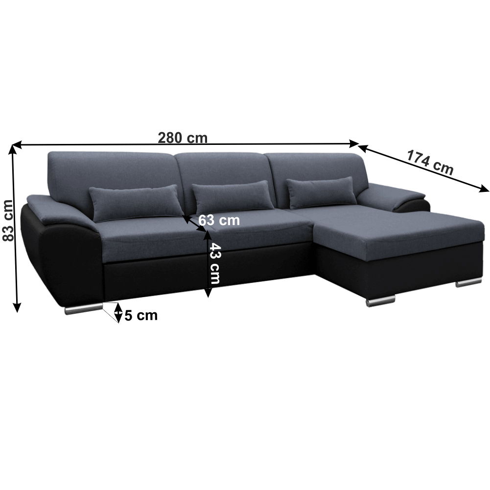 Rohová sedačka Excelsa 2 (P) (černá ekokůže + tmavě-šedá látka)