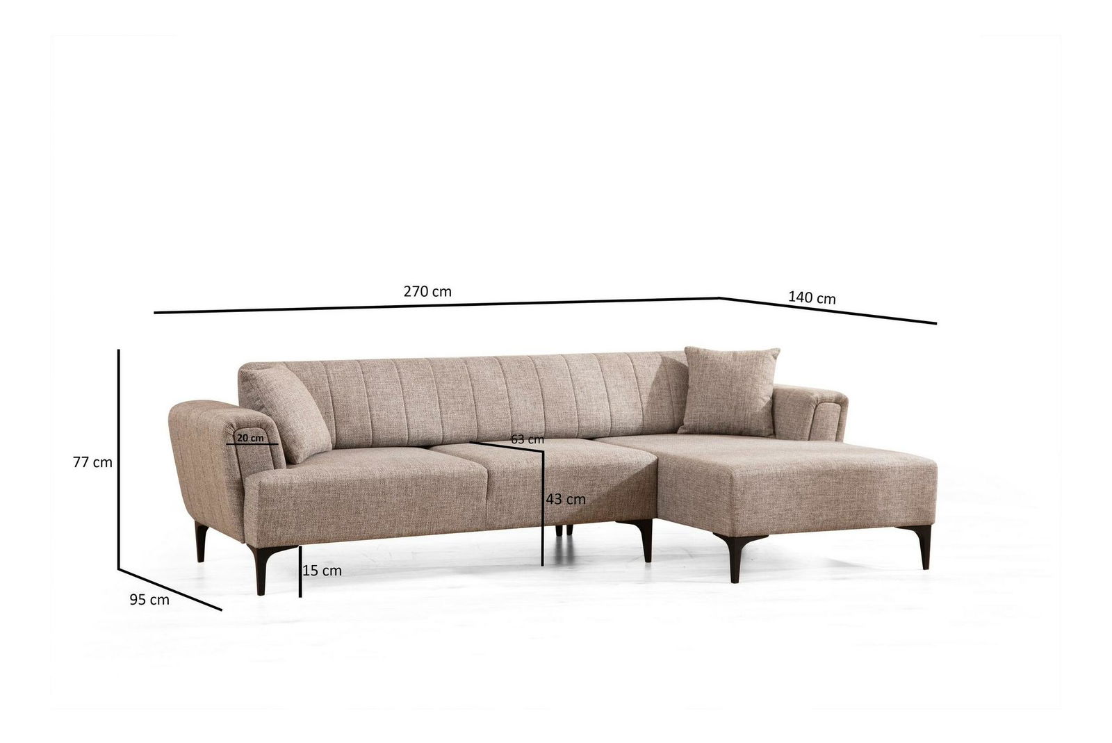 Rohová sedačka Hamletta (P) (světlohnědá + černá)