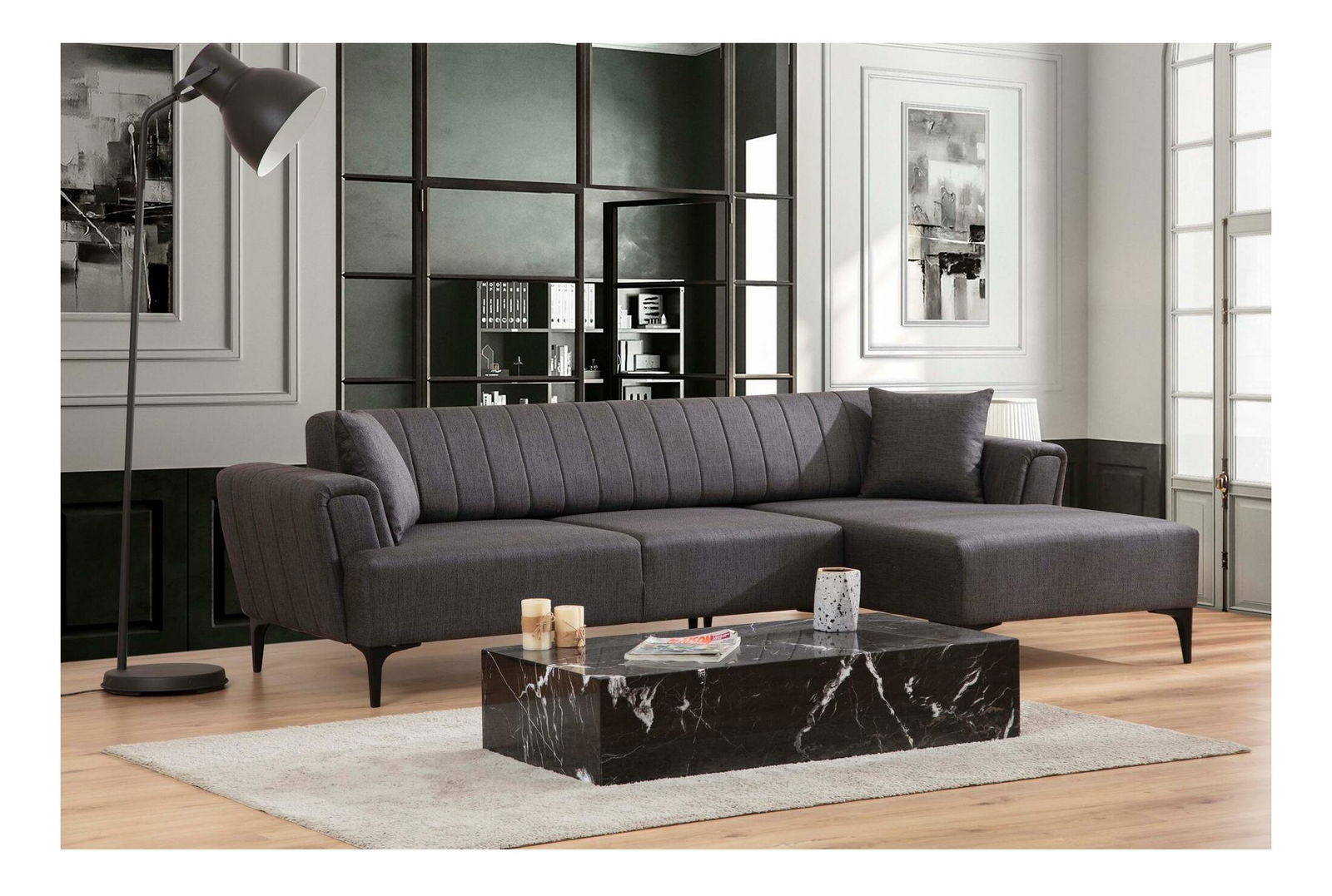 Rohová sedačka Hamletta (P) (tmavě šedá + černá)