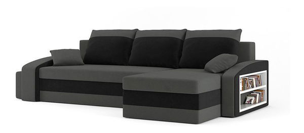 Rohová sedačka Hasina (sivá + čierna) (s poličkou a taburetkou) (s bonell pružinami) (P) *bazar