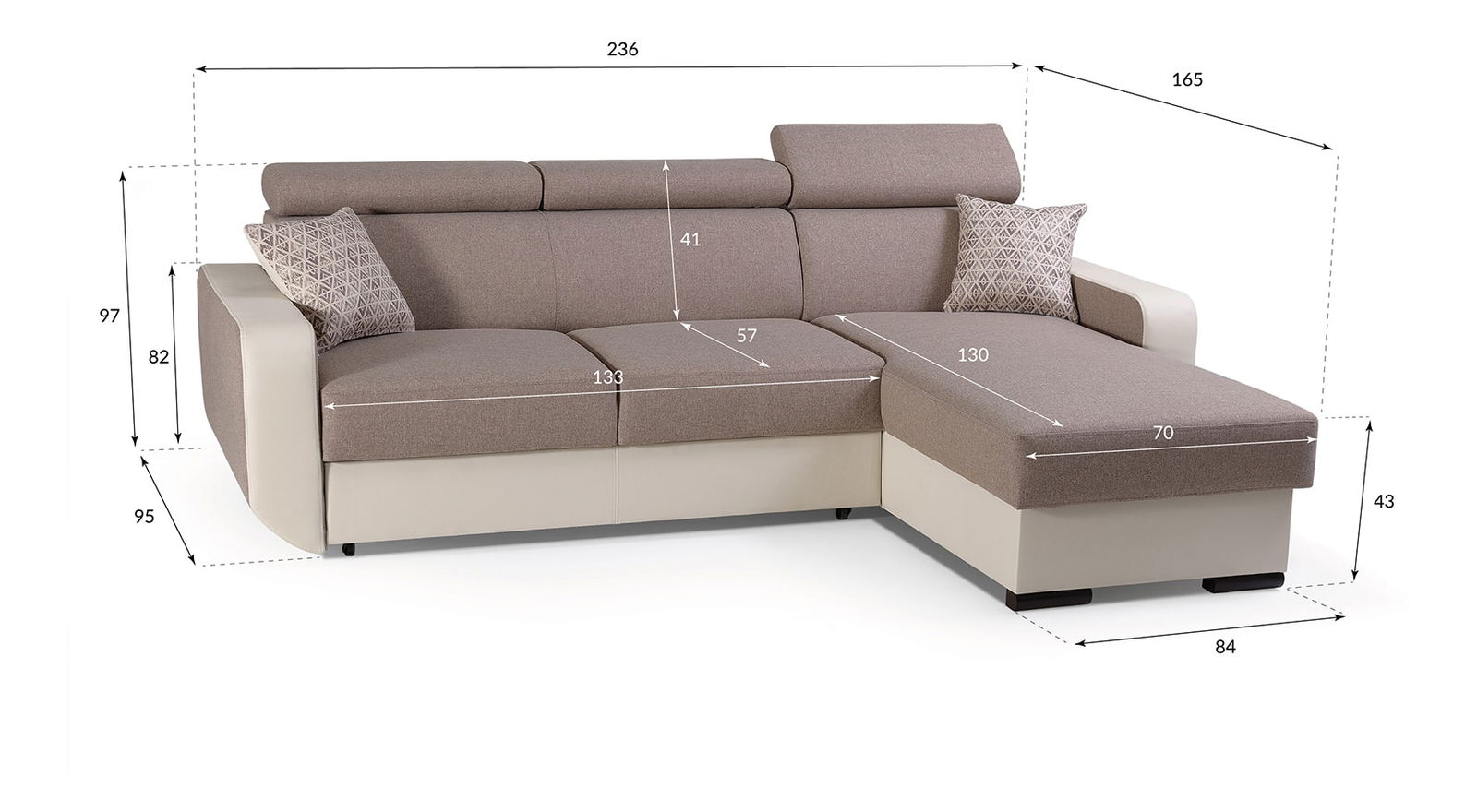 Kvalitná sedačka s úložným priestorom.Oceňujem polohovateľné opierky hlavy. Sme spokojní.