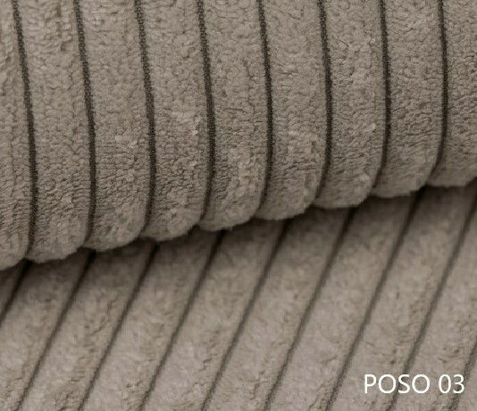 Tkanina Poso je čalounická látka se vzhledem struktury, vyrobená převážně z polyesteru s příměsí nylonu. Je měkká na dotek, odolná vůči oděru a světlu, vhodná na sedačky, křesla a polštáře. Čistí se jemně – nejlépe vlhkým hadříkem nebo speciálním prostředkem na čalounění, nesmí se prát v pračce, bělit ani vystavovat přímému slunci či silnému teplu.