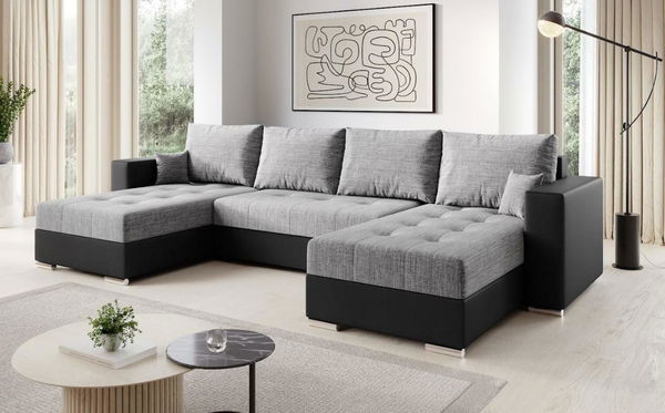 Rohová sedačka Josie U (černá + světle šedá) (L)