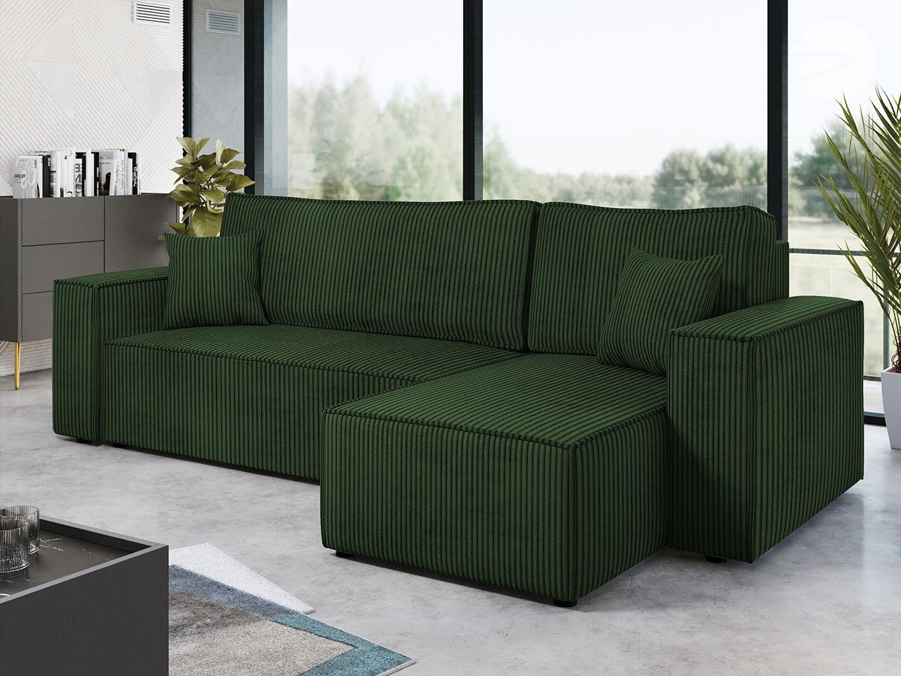 Rohová sedačka Kasuna (tmavě zelená) (s úl. prostorem)