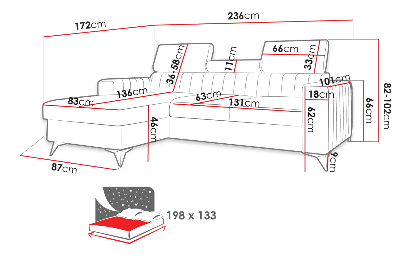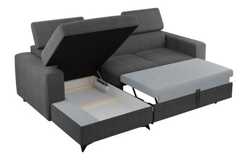 ZobrazitZahalte se do pohodlí a žebrovaného potěšení. Rohová sedačka Laviosuna Premium S s funkcí na spaní je dokonalým kusem nábytku do každého obývacího pokoje. Multifunkční a mimořádně praktická. Navíc vypadá krásně v jakémkoli aranžmá. Tento volně stojící typ dobře poslouží v moderním i klasickém interiéru. Model byl navržen tak, aby byl odpočinek co nejpohodlnější. Má nastavitelné opěrky hlavy, které si snadno přizpůsobíte svým potřebám. Jedná se o rozkládací variantu, vybavenou automatickým rozkládacím systémem Delfin. Kromě funkce na spaní disponuje také úložným prostorem, který poskytuje ideální základnu pro uložení polštářů, peřin a jiných doplňků. Jedná se o rohovou sedačku typu L namontovanou na nožičkách, která umožňuje čištění povrchu pod ní.