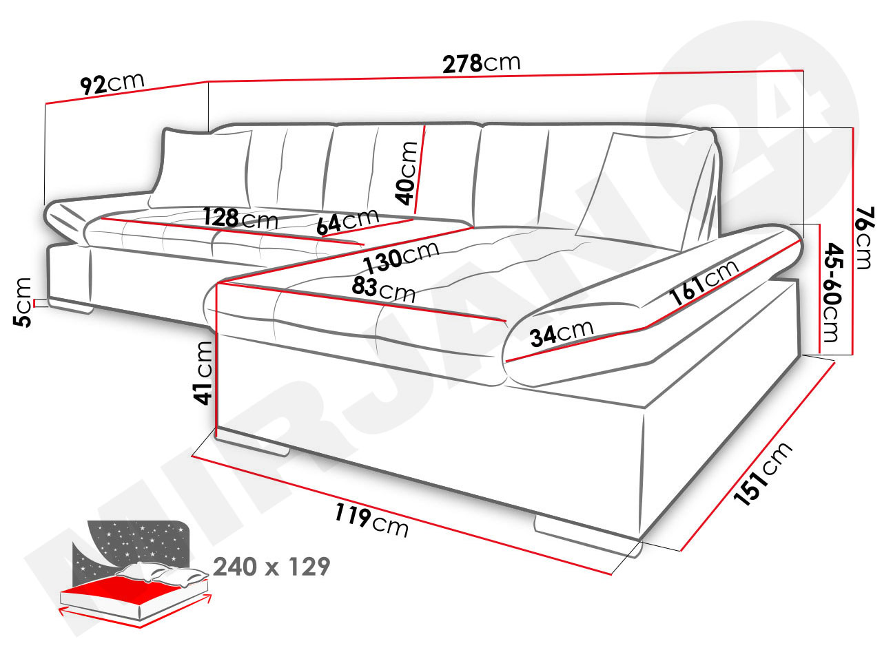 "Sedačka je s funkcí rozkládání, díky čemuž je vhodná i na spaní a to nejen pro Vás ale i pro Vaše hosty. Pod sedací částí najdete velký úložný prostor na prádlo, do kterého můžete uložit polštáře a přikrývky, které nechcete aby bylo vidět. Pod sedacou časťou nájdete veľký úložný priestor na bielizeň, do ktorého môžete uložiť vankúše a prikrývky, ktoré nechcete aby bolo vidieť."